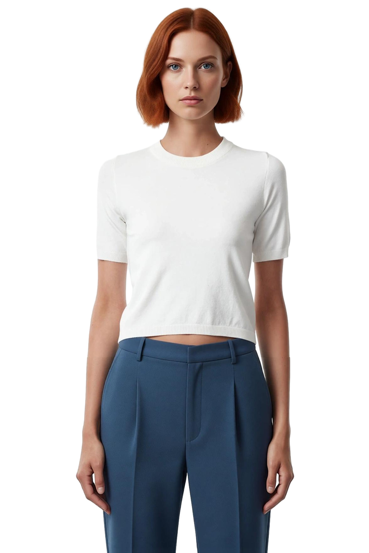 Bu şık kadın triko bluz, regular kalıbı sayesinde vücuda tam oturan, rahat bir kesim sunarak gün boyu konforlu bir kullanım sağlıyor. Merserize görünümü veren özel ipliklerle üretilmiş olması, ürüne yüksek kaliteli ve premium bir dokunuş katıyor. %55 polyester ve %45 viskoz karışımından oluşan materyal bileşeni, cilde nazik davranan yumuşak bir his bırakıyor. İnce triko kumaş dokusu, özellikle ilkbahar ve sonbahar gibi mevsimlerde ideal bir seçenek oluşturuyor. Baskısız, düz tasarımı ile minimalist ve modern bir estetik sunuyor. Bu basic triko bluz, günlük ve casual kombinleriniz için mükemmel bir temel parça olarak öne çıkıyor.Bisiklet yaka tasarımı, klasik ve zamansız bir şıklık sunarken, standart kol yapısı hareket özgürlüğünüzü kısıtlamadan günlük aktivitelerinize devam etmenizi sağlıyor. Süper crop boyu ve kısa kol detayı, modern bir siluet oluşturarak daha genç ve dinamik bir görünüm sergiliyor. Cepsiz ve kemersiz yapısı, ürünün sade ve zarif çizgisini pekiştiriyor. Tek plaka dokuma tekniği ile üretilmiş triko kumaş, hem kalitesini hem de dayanıklılığını kanıtlıyor. Cool & Comfort persona’sı ile hem stil sahibi hem de rahat bir deneyim sunuyor. Ürün, belirtilen yıkama talimatlarına dikkat edildiğinde uzun ömürlü bir kullanım vadediyor.Bu bluz, her vücut tipine uyum sağlayan regular kalıbı ve basic silueti ile dolabınızın kurtarıcı parçalarından biri olacak. Yüksek bel pantolonlar, etekler veya şortlarla kusursuz bir uyum yakalayabilirsiniz. İlkbahar ve sonbahar aylarında tek başına kullanabileceğiniz gibi, serin havalarda ince bir ceket veya hırka altına da giyebilirsiniz. Günlük kullanımın yanı sıra, arkadaş buluşmaları gibi rahat ortamlarda da şıklığınızı tamamlayacaktır. Tekli paket içeriği ile kullanıma hazırdır.Ürün Özellikleri: Regular kalıp, triko materyal, triko kumaş tipi, cepsiz, ince kalınlık, süper crop boy, kısa kol boyu, basic siluet, cool & comfort persona, baskısız tasarım, %55 polyester, %45 viskoz materyal bileşeni, tekli paket içeriği, ilkbahar / sonbahar sezonu.