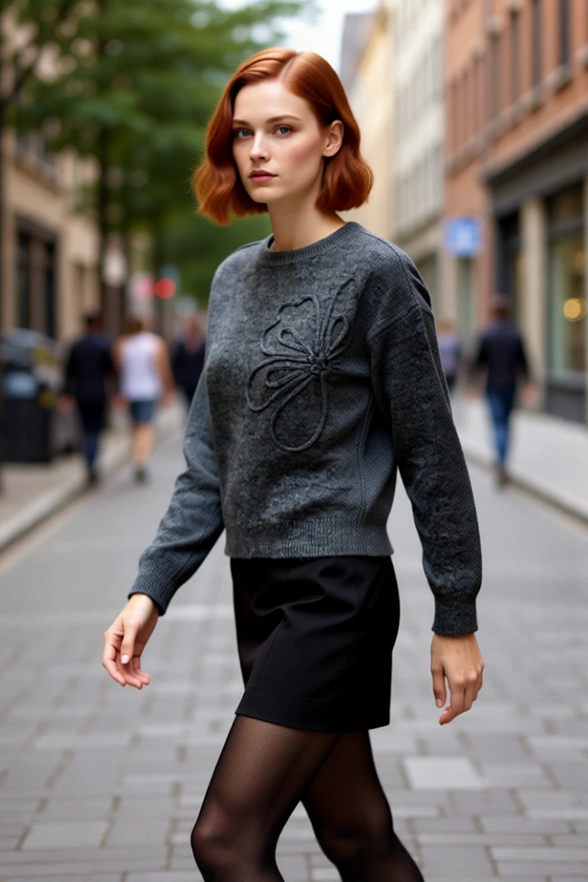 Ürün Özellikleri: Regular kalıp, Akrilik/Polyester materyal, Nakışlı/İşlemeli çiçek desen, Bisiklet yaka, Standart kol, Triko kumaş, Gri renk.