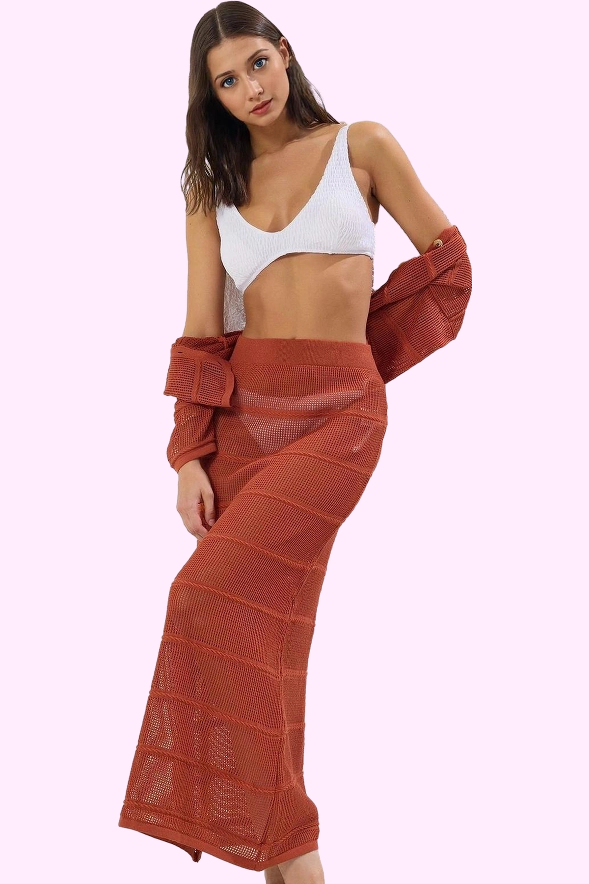 Kadın Triko Kroşe Plaj Midi Etek Şık ve Rahat Yazlık Tasarım Günlük Kullanım Kaliteli Malzeme