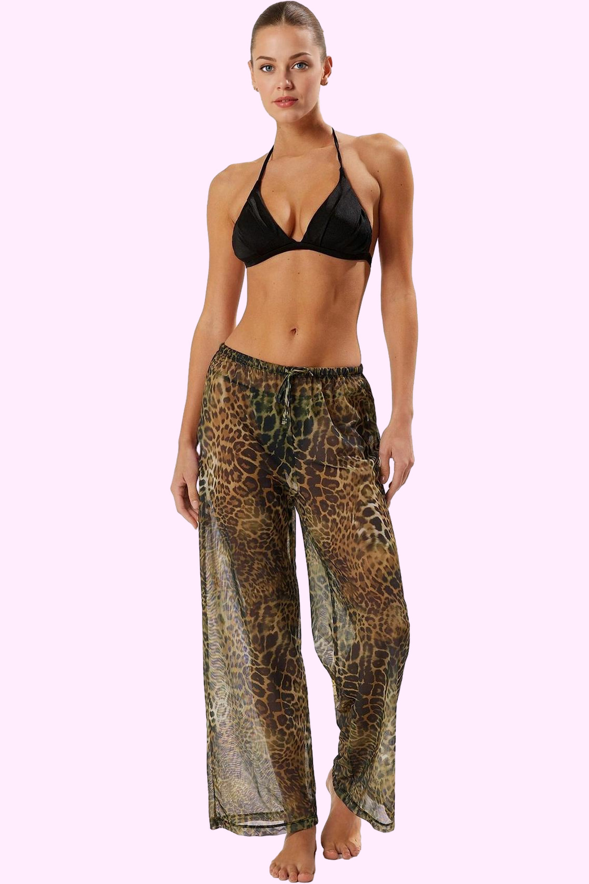 Bu sezonun trend parçası olan çok renkli leopar desenli plaj pantolonu ile yazın tadını çıkarın! Örme kumaştan üretilen bu rahat pantolon, normal bel yapısı ve uzun boyuyla dikkat çekiyor. Boru paça tasarımıyla şıklığınıza şıklık katarken, mesh dokusu sayesinde nefes alabilir ve hafif bir his sunuyor. Sıcak yaz günlerinde serin ve konforlu kalmanıza yardımcı olacak bu pantolon, plajda, havuz başında veya günlük kombinlerinizde rahatlıkla kullanabilirsiniz.