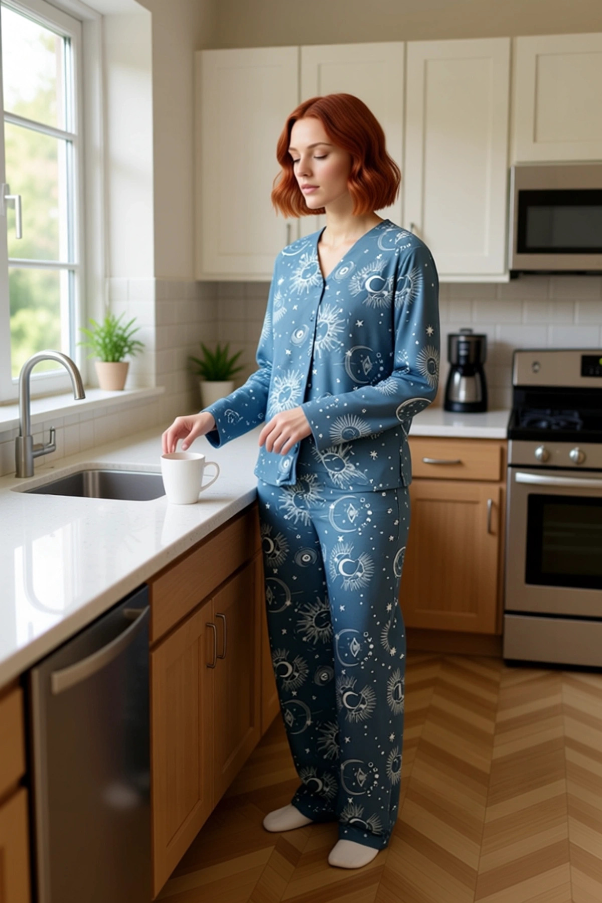 Kadın Uzun Kollu Galaksi Desenli Pijama Takımı Fonksiyonel Dayanıklı Kaliteli Konforlu Şık