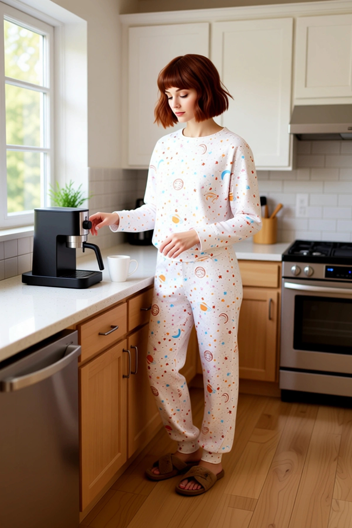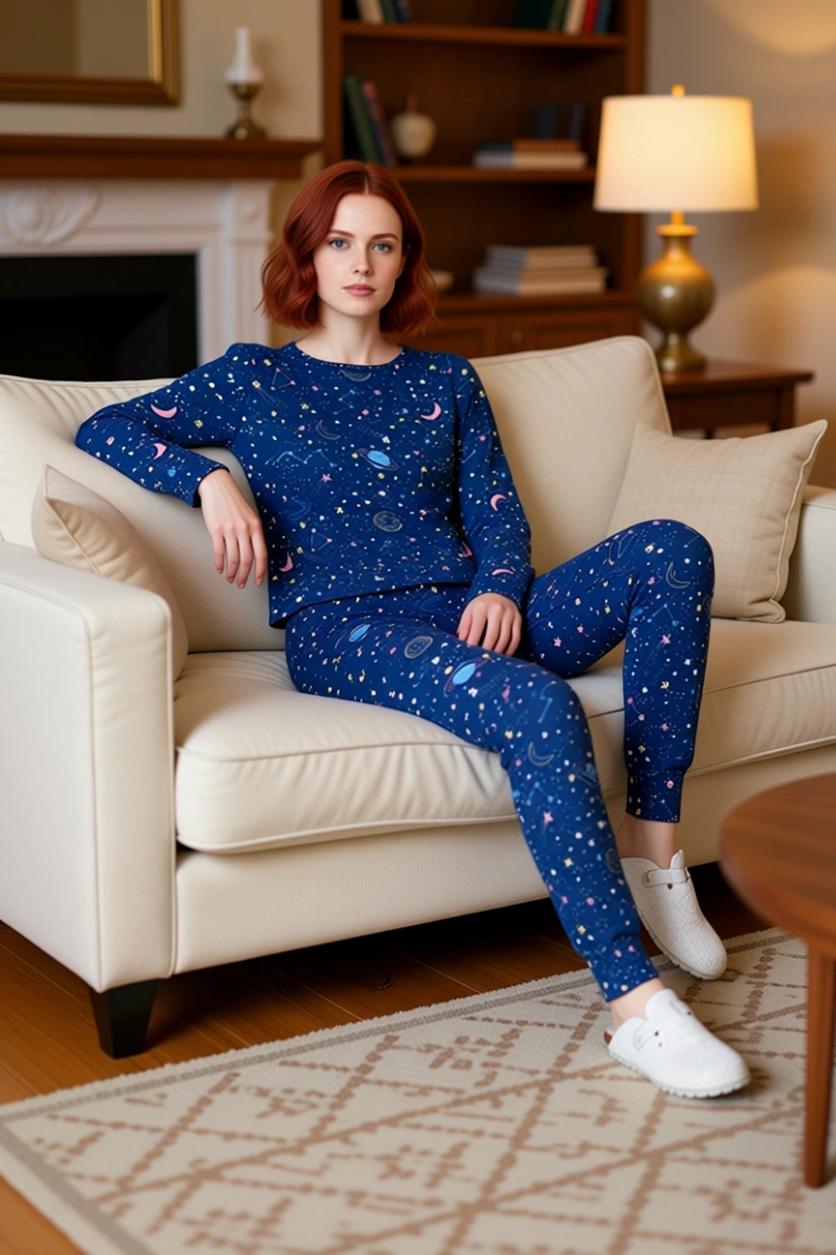Kadın Uzun Kollu Pijama Takımı Galaksi Desenli Renk Fonksiyonel Dayanıklı Kaliteli Estetik