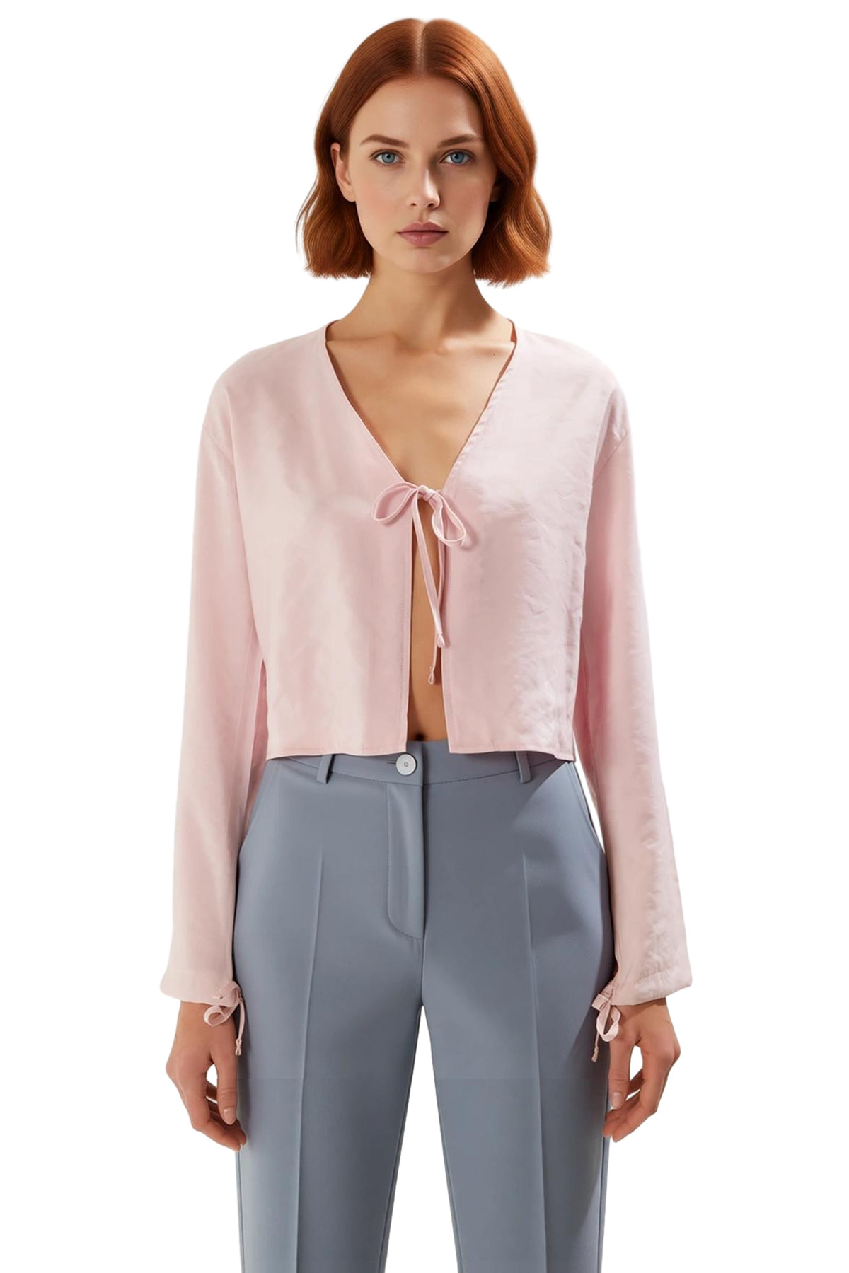Bu şık kadın bluzu, modern tasarımı ve rahat kesimiyle dikkat çekiyor. V yaka detayı, zarif bir görünüm sunarken, ön kısmındaki bağlama detayı ürüne dinamik bir hava katıyor. Düşük kol kesimi, gün boyu konfor sağlarken, uzun kolları her türlü hava koşuluna uyum sağlıyor. Dokuma kumaş yapısı, hafifliği ve dökümlü duruşu ile öne çıkıyor. %85 viskoz ve %15 polyester karışımından üretilen bu bluz, hem yumuşak bir dokunuş hem de uzun ömürlü kullanım vadediyor. Casual ve günlük koleksiyonun bir parçası olan bu ürün, ilkbahar ve sonbahar aylarında ideal bir tercih olacaktır. Ürünün bakım talimatları Hassas Yıkama olarak belirtilmiştir. Bu bluz, her kadının gardırobunda olması gereken, hem rahat hem de stil sahibi bir parçadır. Farklı alt giyim ürünleriyle kolayca kombinlenebilir, her ortamda şık ve rahat bir görünüm elde etmenizi sağlar. Türkiye’de üretilen bu bluz, kalite ve zarafeti bir araya getiriyor. Basic silueti, her vücut tipine uyum sağlayarak kusursuz bir görünüm sunar. Cool ve rahat bir stil arayan kadınlar için özel olarak tasarlanmıştır. Melfi dokuma tipi, kumaşa kendine özgü bir doku ve estetik kazandırır.