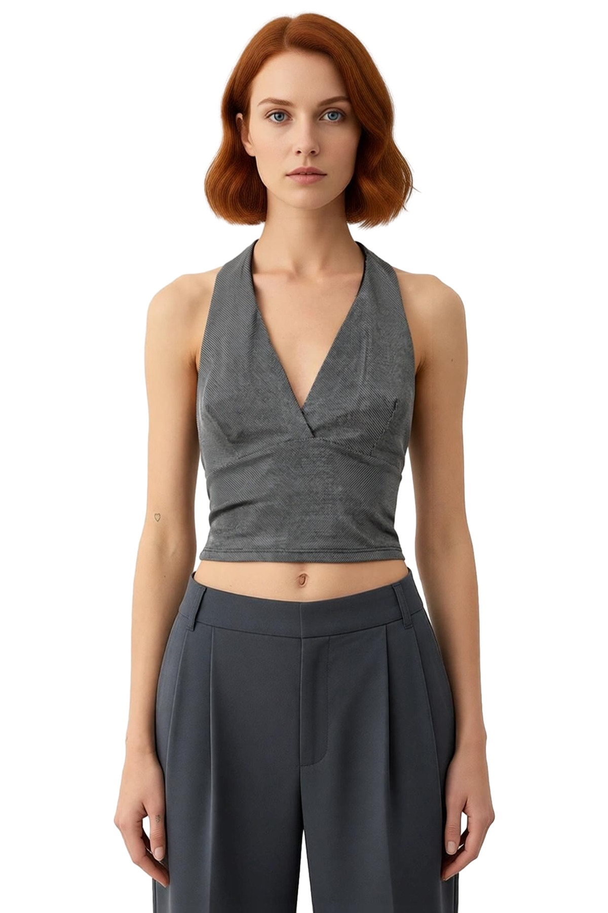 Bu özel tasarım bluz, modern kadının stilini yansıtan zarif bir seçenektir. V yaka detayı, zarif bir dekolte sunarak şıklığı ön plana çıkarır. Kolsuz kesimi, hareket özgürlüğü sağlarken, aynı zamanda serin havalarda veya katmanlı kombinlerde kullanım kolaylığı sunar. Ürünün en dikkat çekici özelliği, kullanılan özel dokuma tekniği ile elde edilen ışıltılı dokusudur. Bu parlaklık, kumaşa sofistike ve göz alıcı bir görünüm kazandırır, böylece ürünü özel günlerinizde veya gece davetlerinizde rahatlıkla tercih edebilirsiniz. Örme kumaşın esnek yapısı, vücuda mükemmel uyum sağlayarak konforlu bir deneyim sunar. Crop kesimi, güncel moda trendlerine uygun olarak tasarlanmış olup, yüksek belli alt giyim ürünleriyle harika bir uyum yakalar. Bu bluz, hem günlük şıklığınızı tamamlamak hem de özel anlarınızda fark yaratmak için idealdir. Jean pantolonlar, şık etekler veya blazer ceketlerle kombinleyerek farklı stiller yaratabilirsiniz. %78 polyester ve %22 metalize iplikten oluşan materyal bileşeni, hem dayanıklılık hem de estetik bir görünüm sunar. Ürünün uzun ömürlü olması için Hassas Yıkama yıkama talimatına dikkat edilmesi önemlidir. Tüm sezonlara uygun olarak tasarlanan bu bluz, Türkiye’de üretilmiştir. Bu parça, stilini ön plana çıkarmak isteyen ve özgün tasarımları tercih eden kadınlar için biçilmiş kaftandır. Vücut hatlarını nazikçe saran kesimi ve dikkat çekici dokusu ile her ortamda kendinizi güvende ve şık hissedeceksiniz. Çeşitli aksesuarlarla kolayca kişiselleştirilebilen bu bluz, gardırobunuzun en sevilen parçalarından biri olmaya adaydır. Hem rahatlığı hem de şıklığı bir arada sunan bu üst, stilinize zarif bir dokunuş katacaktır.