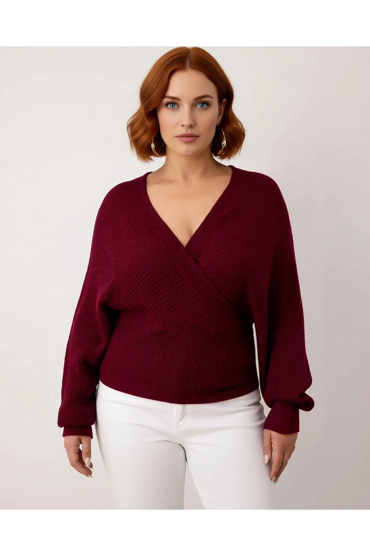 Ürün Özellikleri: Regular kalıp, %100 akrilik materyal, düz desen, V yaka, yarasa kol, triko kumaş, bordo renk, bağcıklı ek özellik.
