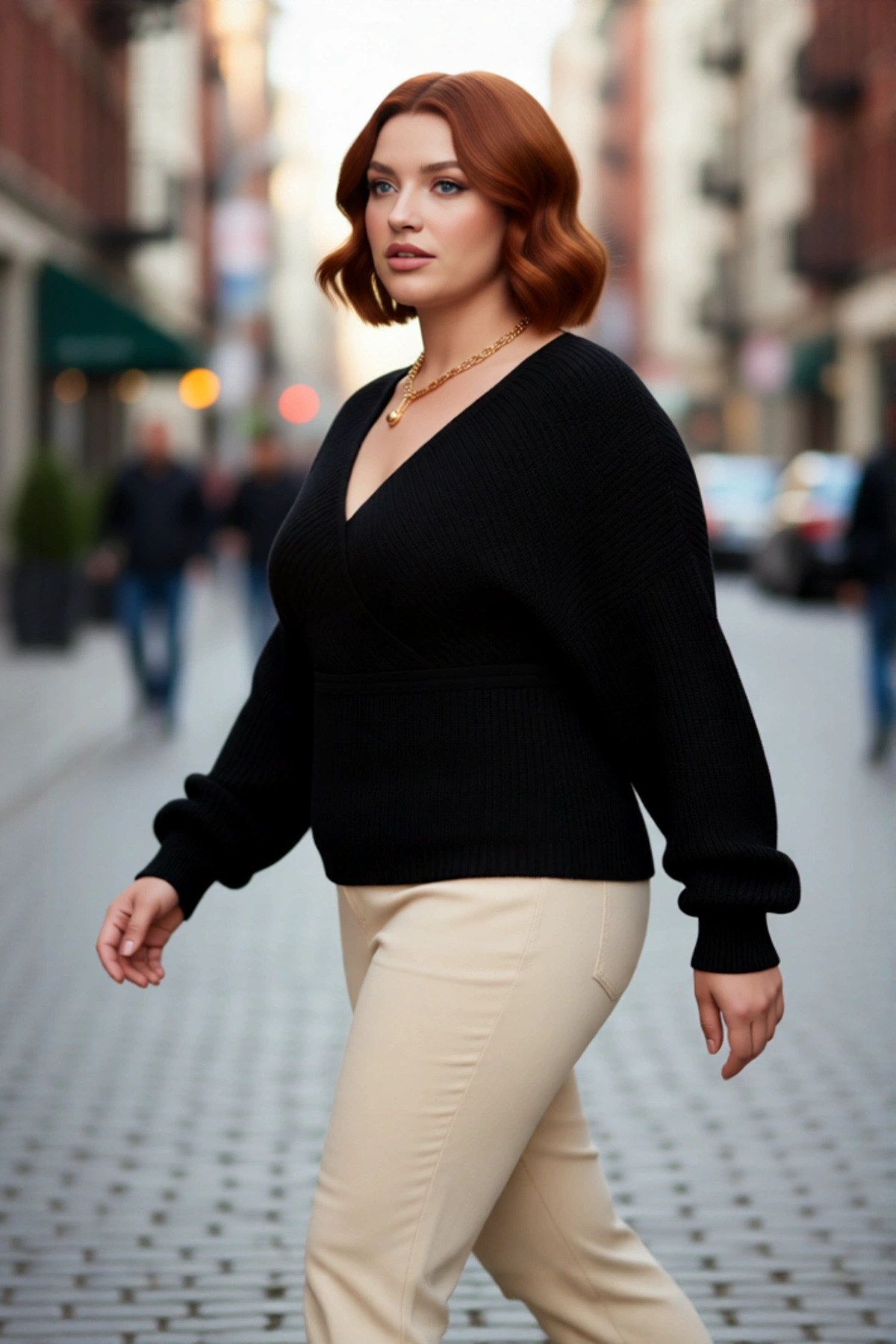 V yaka tasarımı, boyun bölgesine hoş bir açıklık kazandırarak farklı aksesuar kullanımına olanak tanır. Yarasa kol tipi ve uzun kol boyu, giyiminize rahat bir hava katarken, şık duruşunuzdan ödün vermemenizi sağlar. Selanik dokuma tekniğiyle üretilen kaliteli triko kumaşı, esnek yapısıyla hareket özgürlüğü sunar ve gün boyu konforlu bir deneyim vadeder. Dayanıklı yapısıyla uzun ömürlü kullanım imkanı sunan bu kazak, makinede yıkanabilir özelliği sayesinde kolay bakım avantajı da sunar. Büyük beden koleksiyonunda yer almasıyla geniş bir kitleye hitap eder.