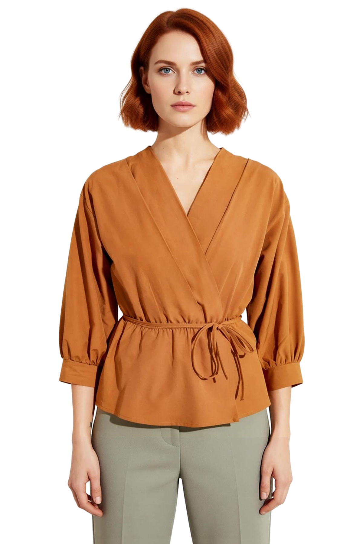 Kadınlar için özel olarak tasarlanan bu bluz, kruvaze V yaka kesimi ve dikkat çekici bağlama detayıyla öne çıkar. Regular kalıbı ve uzun kollu standart kol tipi, her vücut tipine uyum sağlayan rahat bir kullanım sunar. Dokuma kumaş materyali ve terrycotton dokuma tipi ile bu bluz, orta kalınlıkta olup yaz aylarında serin ve konforlu bir his verir. %54 pamuk ve %46 polyester karışımından oluşan kumaş bileşeni, hem yumuşak bir dokunuş hem de uzun ömürlü kullanım sağlar. Cepsiz ve kemersiz tasarımı, minimalist bir estetik sunarken, bağcıklı kapama şekli bluzu kişisel tercihlere göre ayarlama esnekliği tanır. Baskısız ve astarsız yapısı, kumaşın kalitesini ve doğal görünümünü vurgular. Casual ve günlük koleksiyonun bir parçası olarak tasarlanan bu bluz, cool ve comfort persona’ya hitap eder. Türkiye’de üretilen ürün, tekli paket içeriğiyle gelir. Bu bluz, şık ve rahat bir görünüm arayan herkes için mükemmel bir seçimdir. Günlük kullanımda kot pantolonlarla, özel günlerde ise şık eteklerle kombinleyerek farklı stil alternatifleri yaratabilirsiniz. Yaz mevsiminin vazgeçilmez parçalarından biri olmaya adaydır.