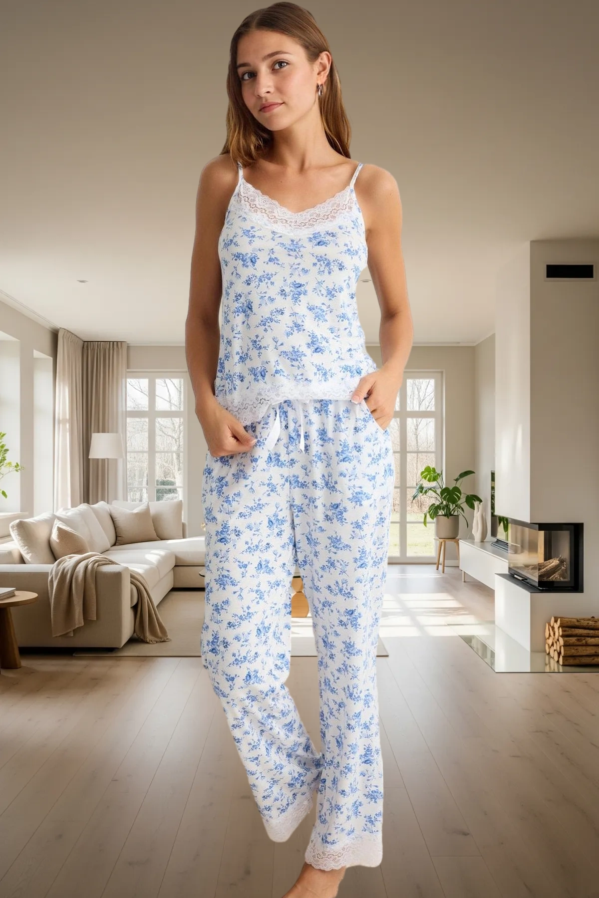 Kadın Viskon Dantel Detaylı Lounge Pijama Takımı Fonksiyonel Dayanıklı Kaliteli Konforlu Şık