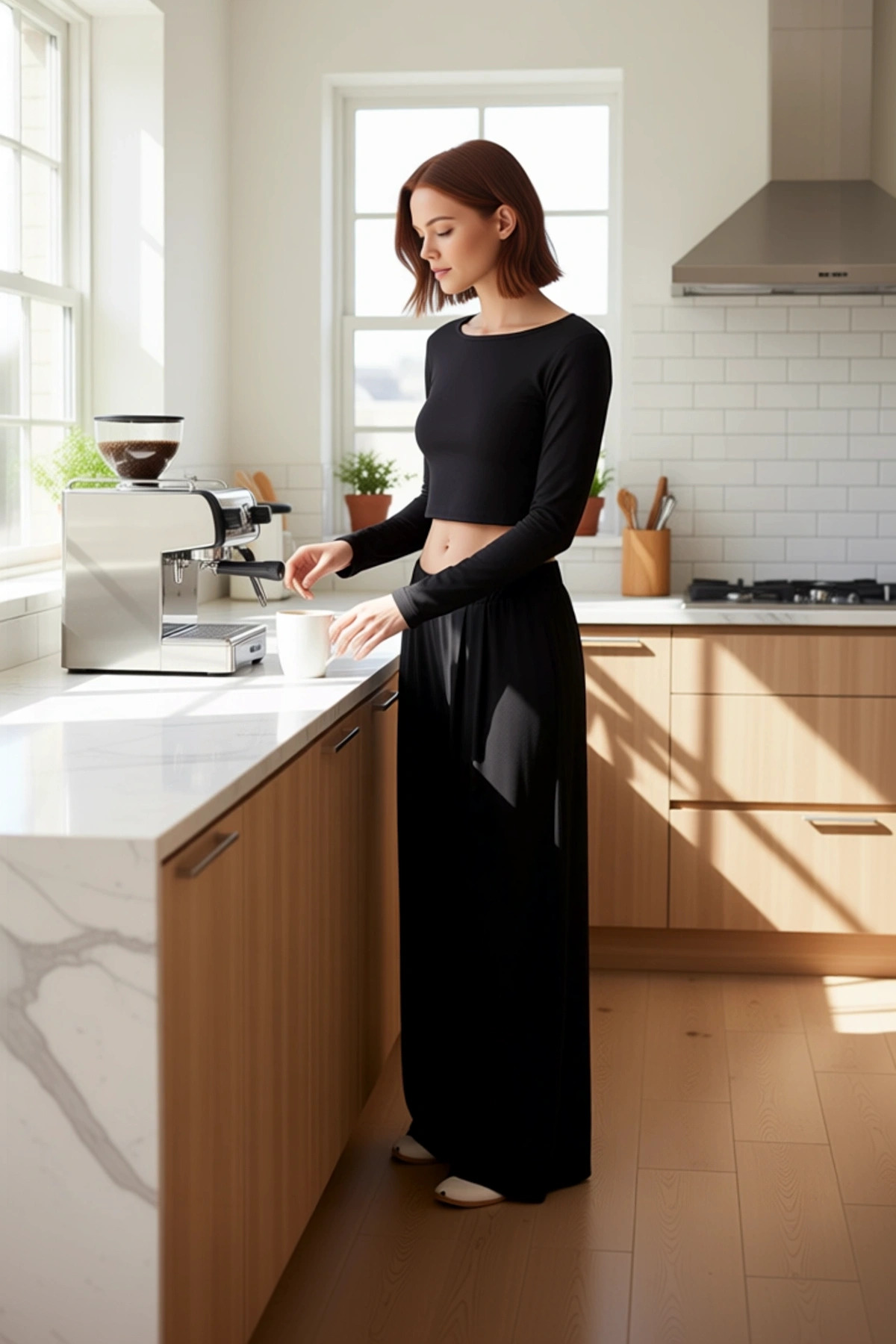 Kadınlar için tasarlanmış bu siyah viskon örme pijama takımı, ev giyiminde konfor ve stil arayanlara hitap ediyor. %97 viskoz ve %3 elastan karışımı, kumaşa inanılmaz bir yumuşaklık ve esneklik kazandırarak gün boyu süren bir rahatlık sunuyor. Düz siyah rengi, zamansız bir şıklık katarken, örme viskon süprem dokusu cildinize nazikçe dokunuyor. Relaxed kalıbı, hareketlerinizi kısıtlamadan özgürce dolaşmanızı sağlarken, yüksek bel ve geniş paça pantolon tasarımı modern bir silüet oluşturuyor. Bu takım, evde geçirdiğiniz zamanı daha keyifli hale getirmek için tasarlandı. Üst giyimde bisiklet yaka ve uzun kollu bir kesim tercih edilmiş, bu da hem sıcaklık hem de şıklık sağlıyor. Pantolonun yüksek bel detayı, vücudu sararak daha fit bir görünüm sunarken, geniş paça ise rahat bir kullanım sunuyor. Elastan içeriği sayesinde kumaş, vücut hareketlerine uyum sağlayarak maksimum konfor sağlıyor. Bu pijama takımı, sadece uyku için değil, aynı zamanda evde dinlenirken veya günlük işlerinizi hallederken de tercih edilebilir. Cildinize dost kumaşı ve rahat kesimi ile kendinizi şımartın. Kış mevsimine uygun olarak tasarlanan bu pijama takımı, sıcak tutarken aynı zamanda nefes alabilirliğini koruyor. Bu takımı, rahat bir sweatshirt ve spor ayakkabılarla kombinleyerek hafta sonu rahatlığına ulaşabilirsiniz. Alternatif olarak, üst kısmını kot pantolon ve botlarla birleştirerek casual bir görünüm elde edebilirsiniz. Pantolonun geniş paçası, farklı ayakkabı modelleriyle uyum sağlayacaktır. Kumaşın hassasiyetini korumak için düşük sıcaklıkta elde yıkama veya hassas programda makinede yıkama önerilir.
