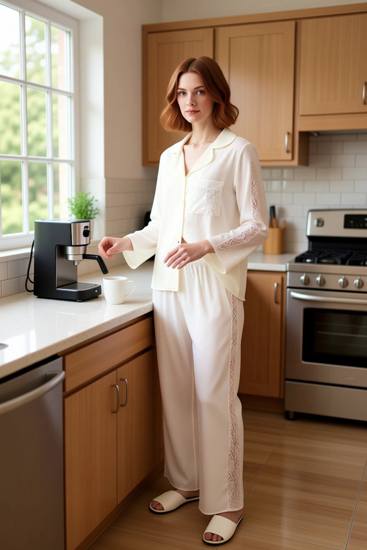Bu ekru viskon pijama takımı, evdeki konforunuzu en üst seviyeye taşımak için özenle üretilmiştir. %100 viskon içeriği sayesinde cildiniz nefes alır ve gün boyu yumuşak bir his yaşarsınız. Düz ekru rengi, her zaman şık ve zarif bir görünüm sunarken, kollarındaki ve pantolon yanlarındaki ince dantel detayları takıma sofistike bir dokunuş katar. Dokuma kumaşın hafifliği ve dökümlü yapısı, hareketlerinizi kısıtlamadan rahat bir kullanım sağlar. Bu pijama takımı, ev giyiminde hem şıklığı hem de konforu bir arada arayan kadınlar için ideal bir seçenektir. Üst kısmındaki zarif işlemeler ve pantolonun boru paça kesimi, takıma modern bir estetik kazandırır. Takımın gömlek yaka tasarımı, klasik bir görünüm sunarken, uzun kollu yapısı özellikle serin havalarda sıcaklık sağlar. Regular kalıbı, vücuda nazikçe oturarak rahat bir kullanım sunar ve gün içindeki hareketlerinizi kısıtlamaz. Dantel detaylı kollar, takıma feminen bir hava katarken, boru paça pantolonlar da zarif bir silüet oluşturur. Bu pijama takımı, yumuşak dokusu ve hafifliği ile uyku sırasında maksimum konfor sağlamayı amaçlar. Evde dinlenirken veya günlük rutinlerinizi yerine getirirken kendinizi iyi hissetmenizi sağlayacak bu parça, gardırobunuzun vazgeçilmezleri arasında yerini alacaktır. Kış mevsimi için tasarlanan bu pijama takımı, evde geçireceğiniz rahat ve keyifli anlar için idealdir. Ekru rengi ve zarif detayları sayesinde, şık bir ev terliği ve yumuşak bir sabahlıkla kombinleyerek güne başlayabilirsiniz. Ayrıca, rahat bir ev elbisesi gibi de kullanılabilir. Takımın bakımı için, elde yıkama veya düşük ısıda makinede hassas yıkama önerilir. Ütüleme gerektirmez, bu da kullanımını daha da kolaylaştırır. Bu pijama takımı, hem kendiniz için harika bir hediye olabilir hem de sevdiklerinize zarif bir sürpriz yapmanızı sağlar.
