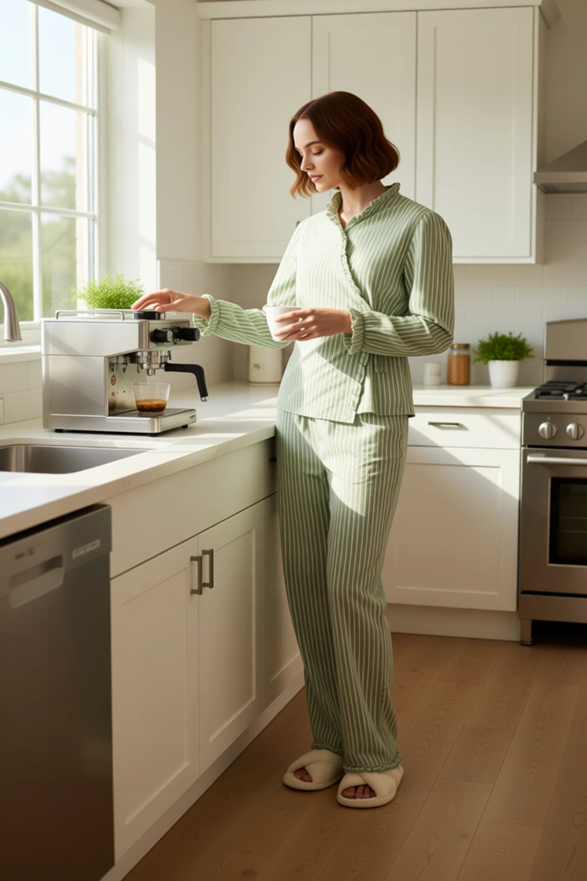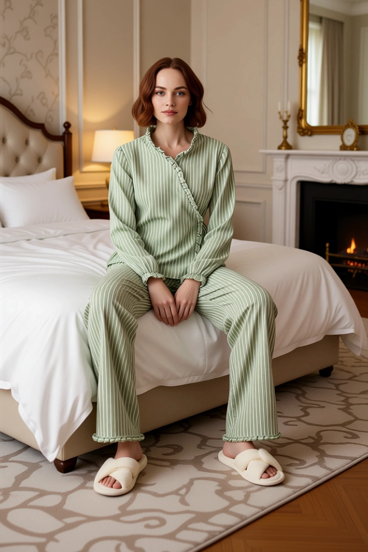 Kadın Viskoz Çizgili Ev Giyim Takımı Fonksiyonel Dayanıklı Kaliteli Konforlu Estetik Rahat