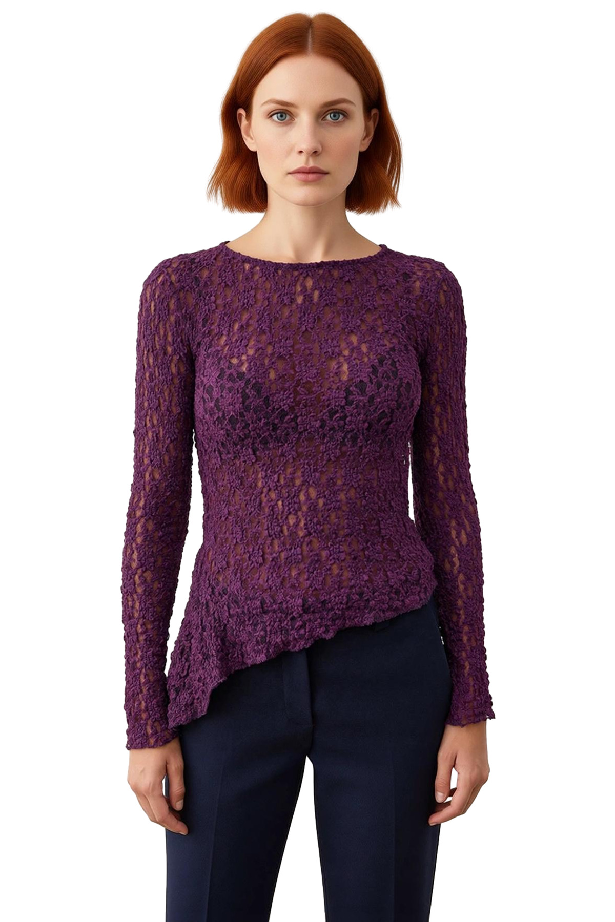 Bu özel tasarım bluz, kadınların zarafetini ve modern stilini ön plana çıkarmak için özenle hazırlandı. Bisiklet yaka kesimi, klasik ve şık bir görünüm sunarken, vücuda oturan (fitted) kalıbı, vücut hatlarını nazikçe vurgulayarak feminen bir siluet oluşturur. Uzun kollu tasarımı, serin günlerde konfor sağlarken, örme kumaşın yumuşak dokusu gün boyu rahat bir kullanım sunar. Ürünün ana malzemesi %98 polyester ve %2 elastandır; bu karışım, bluzun hem dayanıklı olmasını hem de vücuda mükemmel uyum sağlamasını garanti eder. Astarı bulunmayan bu model, hafifliği ve nefes alabilirliği ile öne çıkar. Düz desenli yüzeyi, üzerindeki ince dokuma detaylarının daha belirgin bir şekilde fark edilmesini sağlar. Özellikle dantel dokuma tipi, ürüne sofistike ve zarif bir estetik katar. Bu bluz, gündüz ve gece kullanıma uygunluğu ile dikkat çeker; ister günlük hayatta şık bir görünüm elde etmek, ister özel bir davette göz kamaştırmak için tercih edilebilir. Kış sezonu için ideal bir seçenek olan bu bluz, doğru bakım ile uzun ömürlü bir kullanım sunar. Ürün, yıkama talimatlarına (Hassas Yıkama) uygun şekilde temizlendiğinde, kumaşının kalitesi ve dokusu korunacaktır. Türkiye’de üretilen bu bluz, yüksek kalite standartlarını yansıtır. Kadınlar için tasarlanmış bu bluz, farklı alt giyim parçalarıyla kolayca uyum sağlayarak çok yönlü kombinler oluşturmanıza olanak tanır. Pantolonlarla veya eteklerle tamamlanarak her türlü stil ihtiyacını karşılayabilir. Bu bluz, her kadının gardırobunda bulunması gereken, zamansız ve şık bir parçadır.