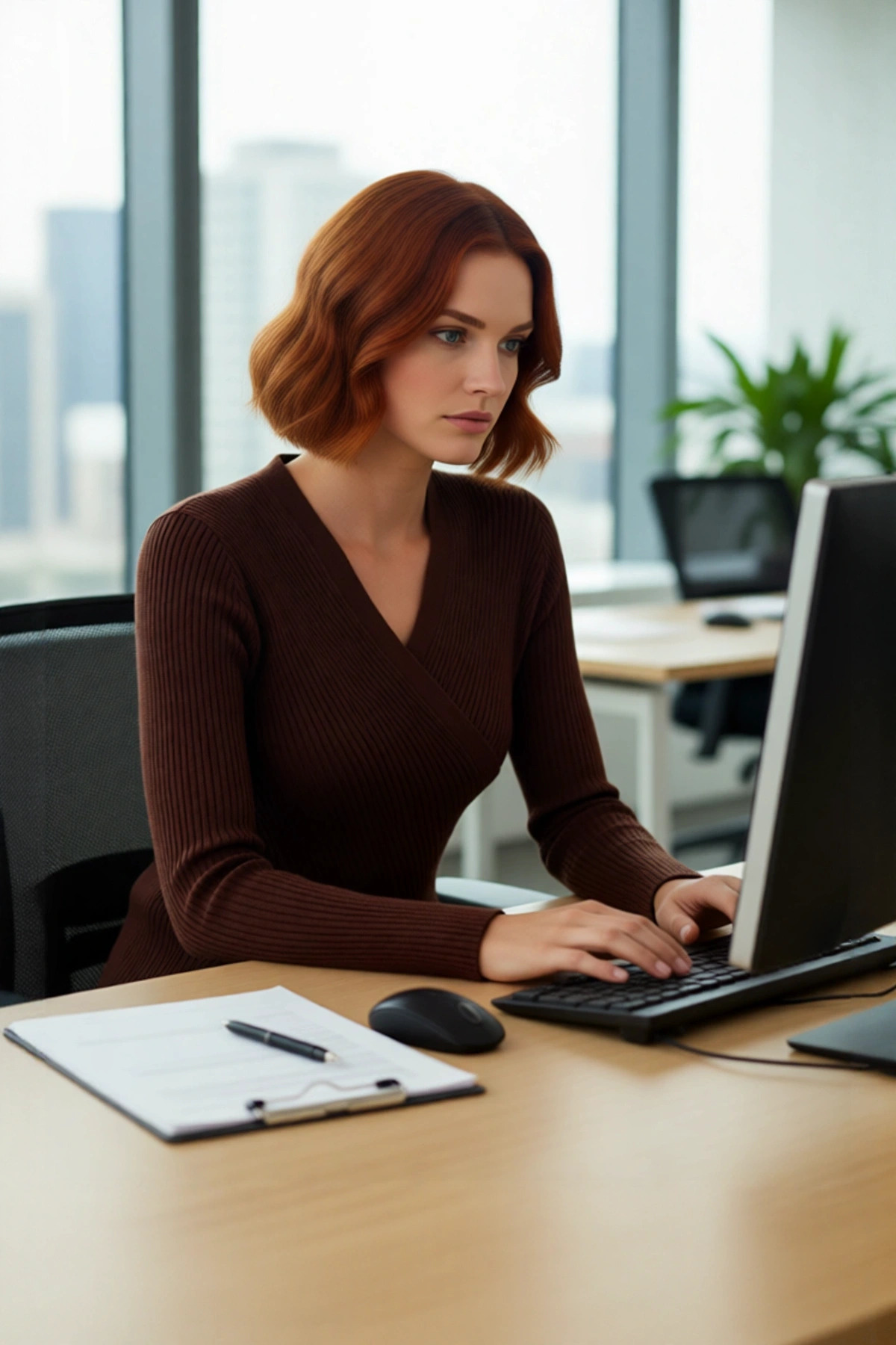 Ürün Özellikleri: Fitted kalıp, akrilik materyal, fitilli desen, kruvaze yaka, standart kol, triko kumaş, kahverengi renk.
