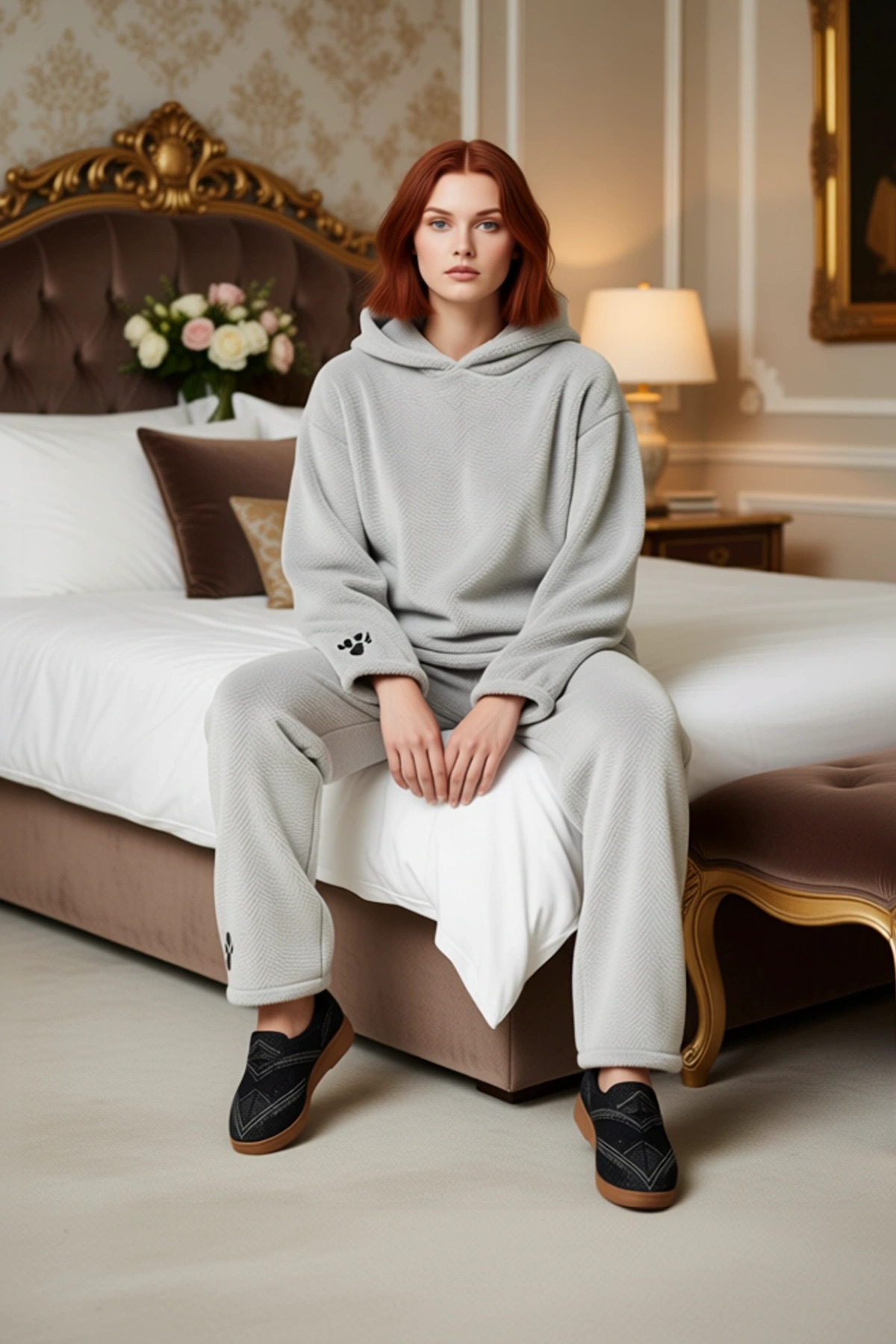 Bu kadın pijama takımı, kış aylarında evde geçireceğiniz zamanları daha keyifli ve konforlu hale getirmek için özel olarak tasarlanmıştır. %100 polyester wellsoft kumaşı, inanılmaz bir yumuşaklık ve sıcaklık sunarak sizi adeta bir bulutun içinde hissettirecektir. Üst kısmındaki sevimli ayıcık figürlü kapüşon, tasarıma eğlenceli bir dokunuş katarken, aynı zamanda ekstra bir sıcaklık sağlar. Takımın genelinde bulunan nakış detayları, ürüne zarif bir görünüm kazandırır. Rahat kesimi ve geniş paça pantolonu ile hareket özgürlüğünüzü kısıtlamadan gün boyu konforlu bir deneyim sunar. Bu pijama takımı, kışın soğuk günlerinde hem şıklığından ödün vermek istemeyen hem de rahatına düşkün kadınlar için biçilmiş kaftandır. Ürünün kapüşonlu yaka tasarımı, soğuk havalarda ekstra koruma sağlarken, düşük kol ve uzun kollu yapısı hareketlerinizi engellemez. Regular kalıbı sayesinde her vücut tipine rahatlıkla uyum sağlar. Örme kumaş dokusu, cildinize nazikçe dokunarak gün boyu süren bir konfor sunar. Alt ve üst olarak iki parçadan oluşan bu takım, geniş paça pantolonu ile uyku sırasında maksimum rahatlık sağlar. Cool ve konforlu bir yaşam tarzını benimseyen kadınlar için ideal olan bu pijama takımı, yumuşaklığı ve sıcaklığı ile sizi sarıp sarmalayacaktır. Evde geçirdiğiniz her anı daha keyifli hale getirecek bir üründür. Kış mevsiminin olmazsa olmazı olan bu pijama takımı, evde rahat bir şıklık sunar. Siyah taytlar, yumuşak ev terlikleri veya rahat spor ayakkabılar ile kombinleyebilirsiniz. Üzerine giyeceğiniz bir şal veya hırka ile soğuk günlerde ekstra sıcaklık elde edebilirsiniz. Bu pijama takımının bakımı oldukça basittir; nazik deterjanlar kullanarak düşük sıcaklıkta makinede yıkanması önerilir. Ürün, kalitesi ve konforu ile uzun yıllar boyunca severek kullanacağınız bir parça olacaktır.