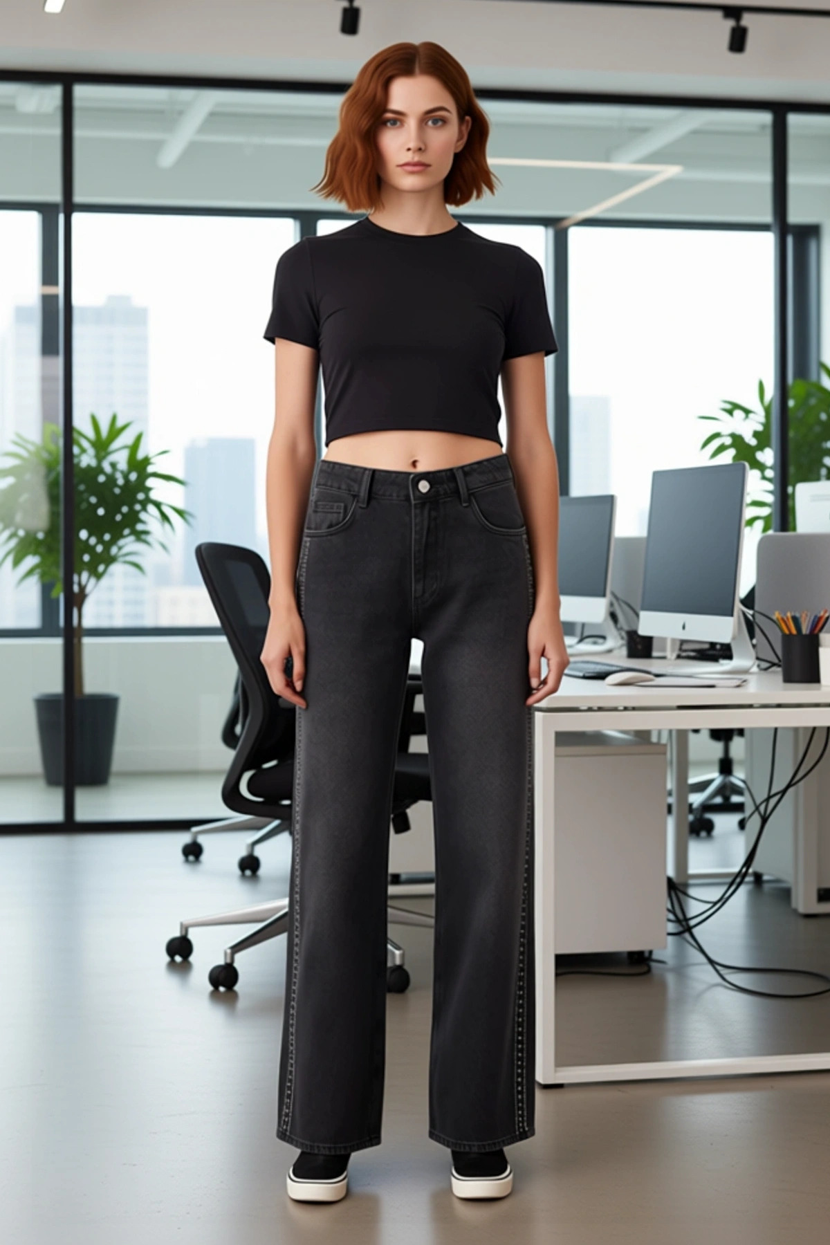 Bu kadın denim pantolonu, modern tasarımı ve konforlu kalıbıyla dikkat çekiyor. Wide leg kesimi, geniş paçalarıyla rahat bir hareket imkanı sunarken, yüksek bel detayı vücudu daha fit gösteriyor. %100 pamuk kumaştan üretilmiş olması, cildinize nazik davranmasını ve gün boyu nefes almasını sağlıyor. Siyah rengi ve düz deseni, pantolonu her türlü kıyafetle kolayca kombinlenebilir hale getiriyor. Yanlardaki zarif aksesuar detayları, pantolona özgün bir stil katıyor ve sıradanlıktan uzaklaştırıyor. Rigid dokuma tipi, pantolonun formunu koruyarak daha şık bir görünüm sunuyor. Bu pantolon, hem günlük şıklığınızı tamamlamak hem de özel anlarınızda fark yaratmak için ideal bir seçimdir. Sürdürülebilirlik ilkesine uygun olarak üretilmiş olması, bilinçli bir tüketici olmanın da bir göstergesidir. Bu pantolon, feminen bir duruş sergilemek isteyen her kadın için tasarlanmıştır. Pantolonun wide leg silueti, hem rahatlığı hem de şıklığı bir araya getiriyor. Yüksek bel kısmı, bel oyuntusunu vurgulayarak daha zarif bir görünüm sağlıyor. Yanlardaki ince ve dikkat çekici aksesuar detayları, pantolona sofistike bir dokunuş katıyor. %100 pamuk materyali, kumaşın yumuşak ve nefes alabilir olmasını sağlayarak gün boyu maksimum konfor sunuyor. Rigid dokuma, pantolonun formunu korumasına yardımcı oluyor ve daha yapısal bir görünüm veriyor. Bu pantolon, modern kadının gardırobunda olması gereken, hem şık hem de pratik bir parça olarak öne çıkıyor. Günlük kullanım için ideal olmasının yanı sıra, özel günlerde de şık bir alternatif oluşturuyor. Bu pantolon, stil sahibi ve konforu ön planda tutan kadınlar için özenle tasarlanmıştır. Bu siyah wide leg denim pantolon, her mevsim kullanıma uygun bir parçadır. İlkbahar ve sonbahar aylarında idealdir. Kombin önerisi olarak, üzerine basic bir tişört veya şık bir ipek bluz tercih edebilirsiniz. Altına topuklu botlar veya zarif sandaletler giyerek şık bir görünüm elde edebilirsiniz. Daha spor bir tarz için sneakerlarla da kombinleyebilirsiniz. Bu pantolon, aynı zamanda şık bir blazer ceket veya deri ceket ile de harika duracaktır. Bakımı için, benzer renklerle ve düşük sıcaklıkta makinede yıkanması önerilir.