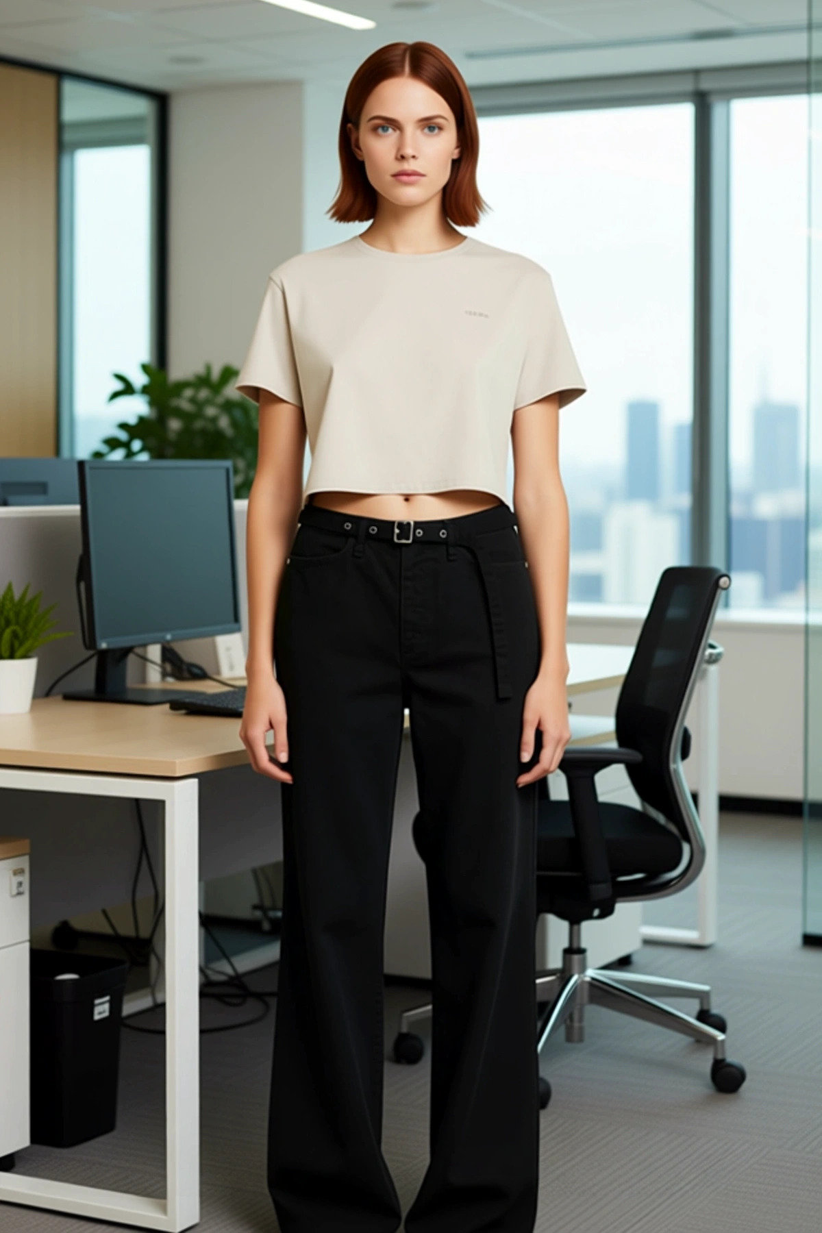 Bu kadın siyah wide leg jean, modern ve şık bir görünüm arayanlar için tasarlandı. Yüksek bel özelliği, bacakları daha uzun gösterirken, geniş paça kesimi rahat bir kullanım sunar. Pantolonun bel kısmında yer alan kuş gözü detaylı kemer, tasarıma zarif bir dokunuş ekleyerek stilinizi bir üst seviyeye taşır. %100 pamuk kumaşı, cildinize nazik davranır ve gün boyu nefes alabilirlik sağlar, bu da onu hem günlük kullanım hem de uzun süreli aktiviteler için ideal kılar. Düz deseni, farklı renk ve desenlerdeki üstlerle kolayca uyum sağlar, bu da onu gardırobunuzun çok yönlü bir parçası yapar. Rigit denim dokusu, pantolonun formunu koruyarak zamansız bir şıklık sunar. Cool ve konforlu persona ile tasarlanan bu jean, stil sahibi kadınlar için vazgeçilmez bir seçenektir. Siyah rengi, her türlü kıyafetle kolayca kombinlenmesine olanak tanır ve her zaman şık bir görünüm sunar. Bu wide leg jean, yüksek bel, geniş paça ve kuş gözü detaylı kemer gibi dikkat çekici özelliklere sahiptir. Yüksek bel, vücut oranlarını dengeleyerek daha zarif bir silüet oluşturur. Geniş paça, hareket özgürlüğü sağlayarak gün boyu konfor sunar. Beldeki kemer detayı, pantolona ekstra bir stil katmanı ekler ve bel çizgisini vurgular. %100 pamuk içeriği, pantolonun yumuşak ve nefes alabilir olmasını sağlar, bu da onu sıcak havalarda bile rahat bir seçenek haline getirir. Casual ve günlük kullanım için tasarlanmış bu pantolon, rigid denim dokusu sayesinde dayanıklılığını korur. Bu özellikler, pantolonu hem şık hem de fonksiyonel bir giyim parçası yapar. Bu siyah wide leg jean, her mevsim için uygun bir parçadır. İlkbahar ve yaz aylarında sandaletler ve hafif bluzlarla, sonbahar ve kış aylarında ise botlar ve kazaklarla kombinlenebilir. Pantolon, basic tişörtler, şık gömlekler veya spor üstlerle harika bir uyum sergiler. Kombin önerileri arasında, beyaz bir basic tişört ve sneakerlar ile rahat bir günlük stil veya şık bir ipek bluz ve topuklu ayakkabılarla daha sofistike bir görünüm yer alır. Bu jean, gardırobunuzdaki her parça ile kolayca uyum sağlayarak stilinize pratiklik katar.