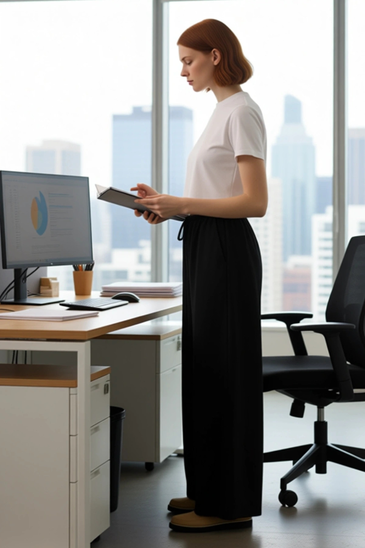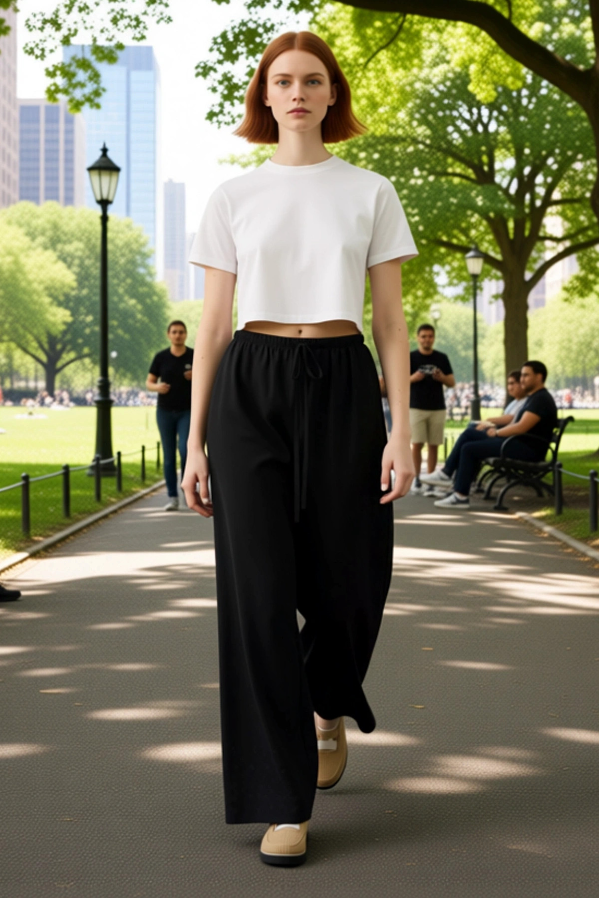 Bu şık kadın pantolonu, %100 pamuk poplin kumaştan üretilmiştir ve rahatlığı ön planda tutar. Siyah rengi ve düz deseni ile zamansız bir parça olan bu pantolon, geniş paça kesimi sayesinde modern ve havalı bir görünüm sunar. Yüksek bel detayı, vücudu sararak zarif bir silüet oluştururken, poplin dokuması kumaşa hafiflik ve dökümlülük kazandırır. Günlük kullanım için ideal olan bu pantolon, cool ve comfort bir persona yansıtmak isteyen kadınlar için tasarlanmıştır. Regular boyu ile farklı boylardaki kullanıcılara uyum sağlar. Bu pantolon, hem şıklığı hem de konforu bir arada arayanlar için mükemmel bir tercihtir. Pantolonun öne çıkan özellikleri arasında %100 pamuk poplin kumaşı, geniş paça ve yüksek bel kesimi yer alır. Bu tasarım unsurları, pantolonun hem rahat hem de şık olmasını sağlar. Yüksek bel detayı, bel çizgisini vurgulayarak daha feminen bir görünüm sunar. Geniş paça ise hareket özgürlüğü sağlayarak gün boyu konforlu bir kullanım sunar. %100 pamuk poplin kumaş, nefes alabilen yapısıyla sıcak havalarda bile serinlik hissi verirken, yumuşak dokusuyla da cilde dosttur. Bu pantolon, günlük aktivitelerinizde veya özel günlerinizde rahatlıkla tercih edebileceğiniz çok yönlü bir parçadır. Şıklığı ve konforu bir arada sunan bu pantolon, gardırobunuzda mutlaka bulunması gereken bir parçadır. Bu pantolon, ilkbahar ve yaz ayları için mükemmel bir seçenektir. Kombin önerisi olarak, üzerine basic bir tişört veya crop top ile tamamlayarak spor bir görünüm elde edebilirsiniz. Daha şık bir davet için ise ipek bir bluz ve topuklu ayakkabılarla zarif bir stil yaratabilirsiniz. Beyaz spor ayakkabılar veya sandaletlerle de günlük kullanımda rahat bir şıklık yakalayabilirsiniz. Bu pantolonun bakımı için, düşük sıcaklıkta ve benzer renklerle yıkama önerilir. Ütüleme işlemini de düşük ısıda yapmanız kumaşın ömrünü uzatacaktır.