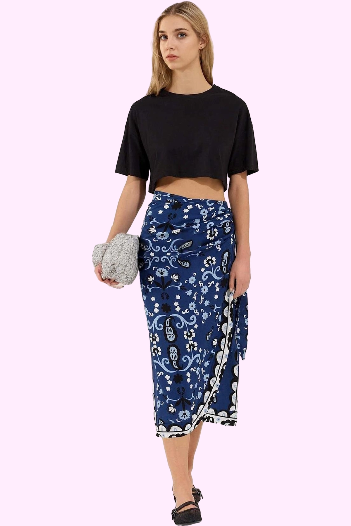 Rahatlığı ve şıklığı bir arada arayan kadınlar için ideal bir seçenek olan bu midi boy etek, yaz aylarının sıcak günlerinde bile sizi serin ve konforlu tutacak. %100 viskondan üretilen kumaşı, nefes alabilir özelliğiyle gün boyu ferahlık sunarken, etkileyici etnik desenleri ile de tarzınıza ayrı bir hava katacak. Kruvaze kapamalı tasarımıyla hem rahatlığı hem de şıklığı bir arada sunar. Shally dokuma tekniği ile üretilen etek, dayanıklı ve uzun ömürlü kullanım sağlar.