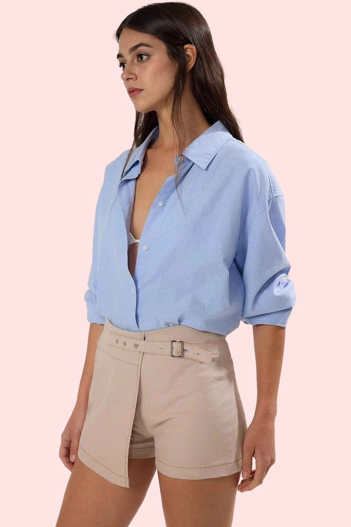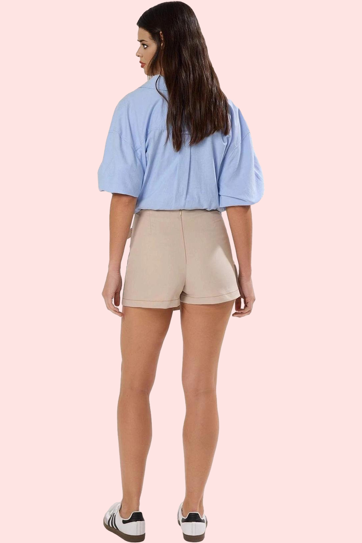 Sizi yazın sıcak günlerinde serin ve şık tutacak, bej renkli mini şort eteğimizle tanışın! Yüksek bel tasarımı ile belinizi ince gösterirken, dar paçası ile bacaklarınızı daha uzun gösterecek. Dokuma gabardin kumaştan üretilen bu etek, dayanıklılığı ve nefes alabilir yapısıyla rahatlığın ve şıklığın mükemmel birleşimini sunuyor. Kontrast dikiş detayları ise şıklığınıza şıklık katıyor. Günlük yaşamınızda rahatlıkla kullanabileceğiniz bu etek, tişörtler, bluzlar ve gömleklerle muhteşem kombinler yaratmanıza olanak tanıyor.