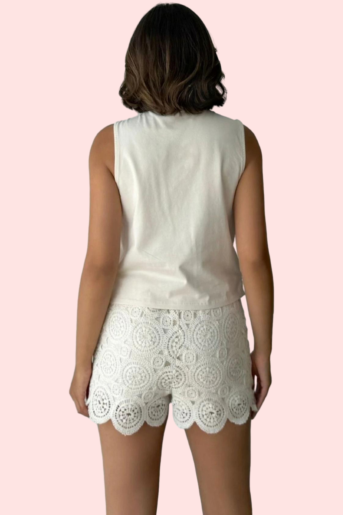 Dokuma kumaştan üretilen bu mini şort, rahat bir kullanım deneyimi sunar. Yüksek bel kesimi sayesinde, belinizi ince gösterir ve vücudunuza oturan bir görünüm sağlar. Geniş paçası ise her adımda özgür hissetmenizi sağlar. Şortun bej rengi, her tarza ve stile uygun olup, farklı üst giyim parçaları ile kombinlenebilir. Çiçek desenli brode işlemeleri şık bir detay olarak göz doldurur.