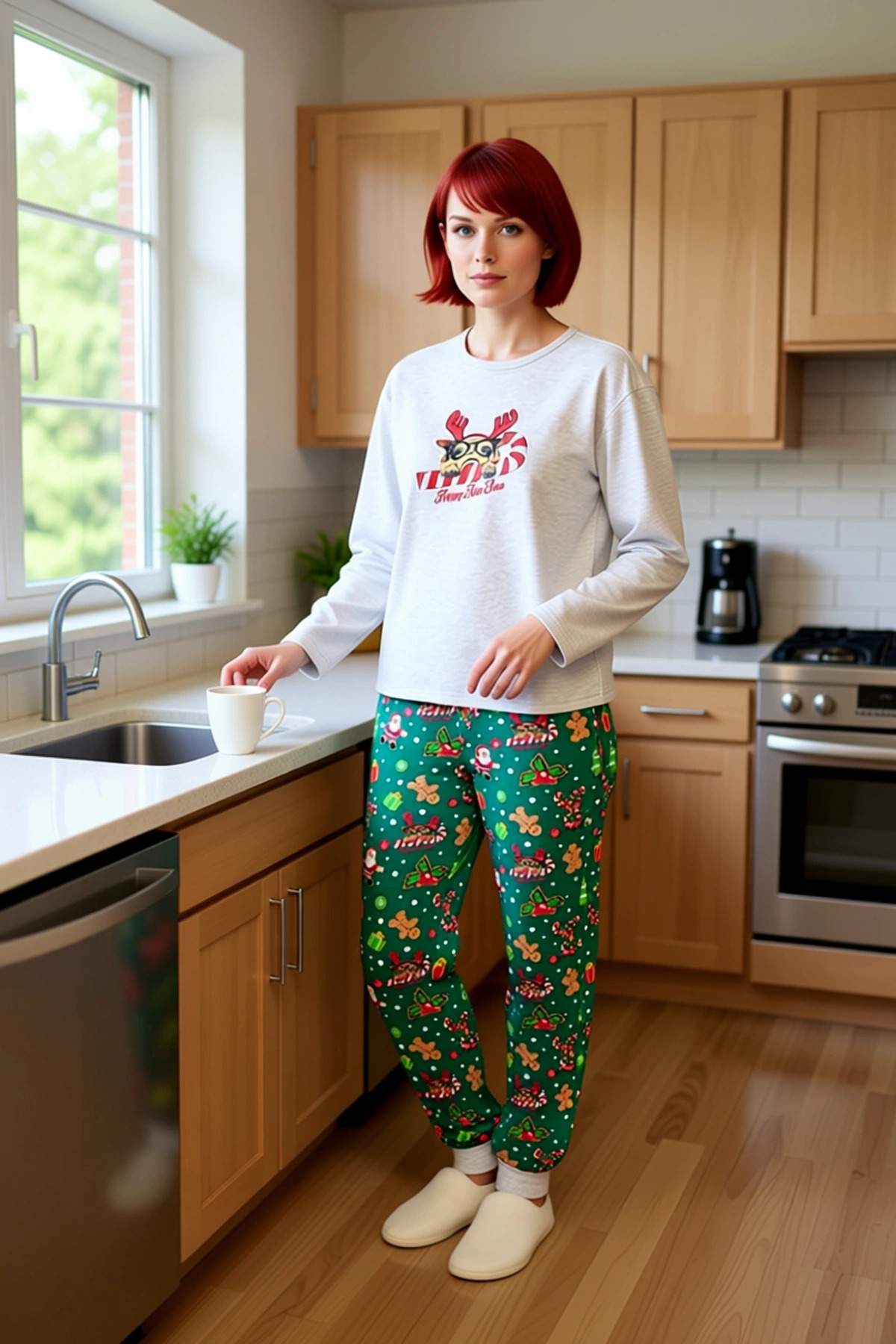 Kadin Yesil Yılbaşı Desenli Pijama Takımı Fonksiyonel Dayanıklı Kaliteli Konforlu Estetik Şık