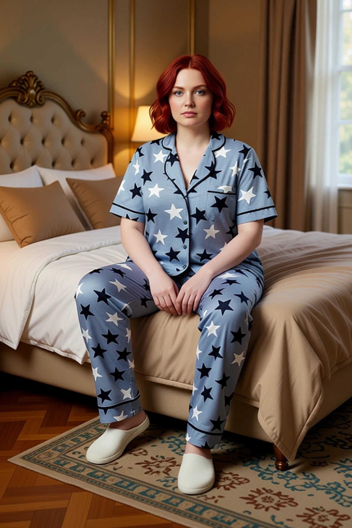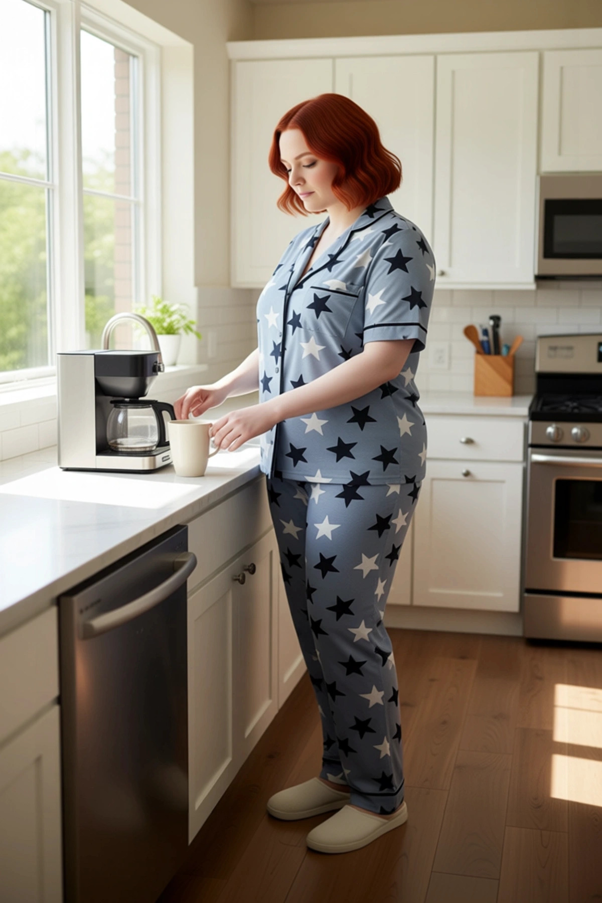Kadin Yıldız Desenli Pijama Takımı Gömlek Yaka Fonksiyonel Dayanıklı Kaliteli Konforlu Şık