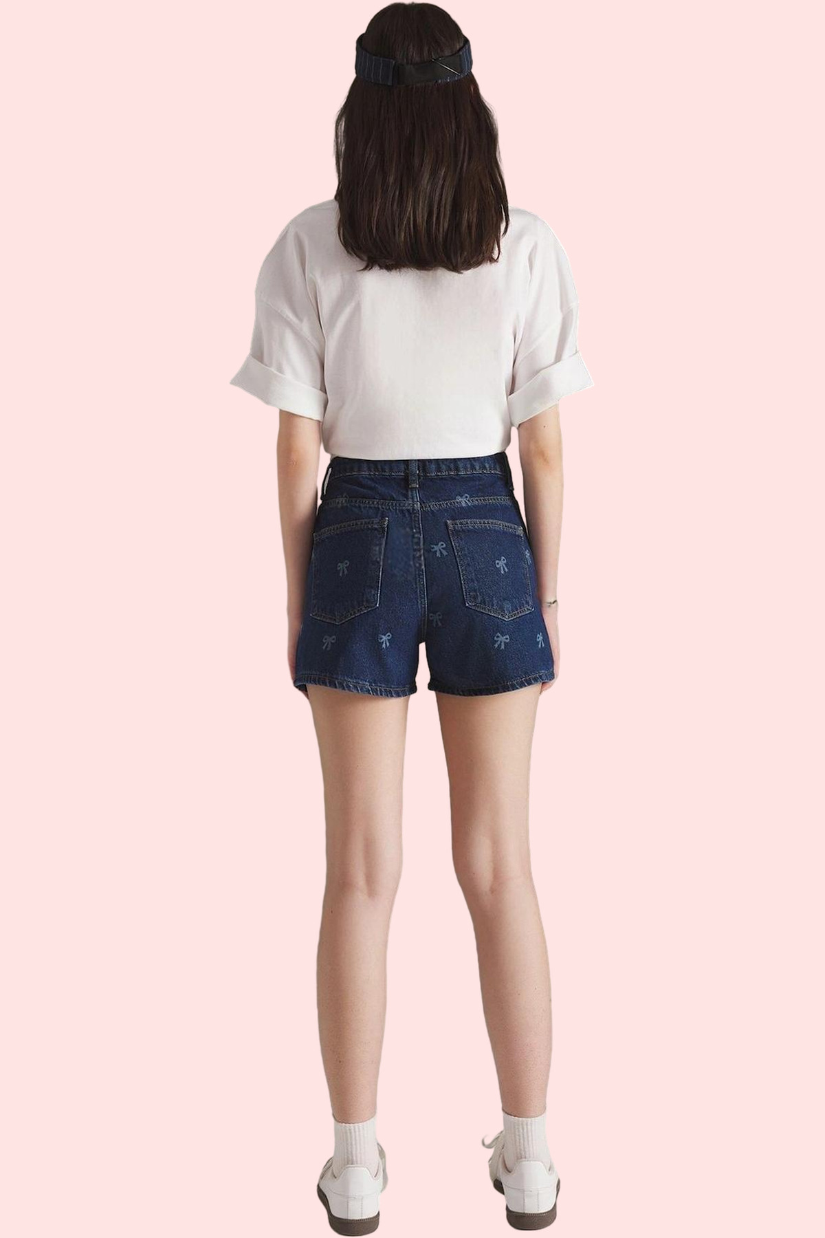 Rahatlığı ve şıklığı bir arada arayan kadınlar için özel olarak tasarlanan yüksek bel denim şortumuzla tanışın! %100 pamuk kumaşı, nefes alabilirliği ve yumuşak dokusuyla yaz aylarında gün boyu konfor sunar. Yüksek bel tasarımı, vücut hatlarınızı zarifçe vurgularken, boru paça modeli modern ve şık bir görünüm sağlar. Kısa boyu ile yaz sıcağında serin kalmanızı sağlar. Baskılı desen detayıyla benzersiz bir stile sahip olan bu şort, her türlü günlük kombininiz için idealdir.