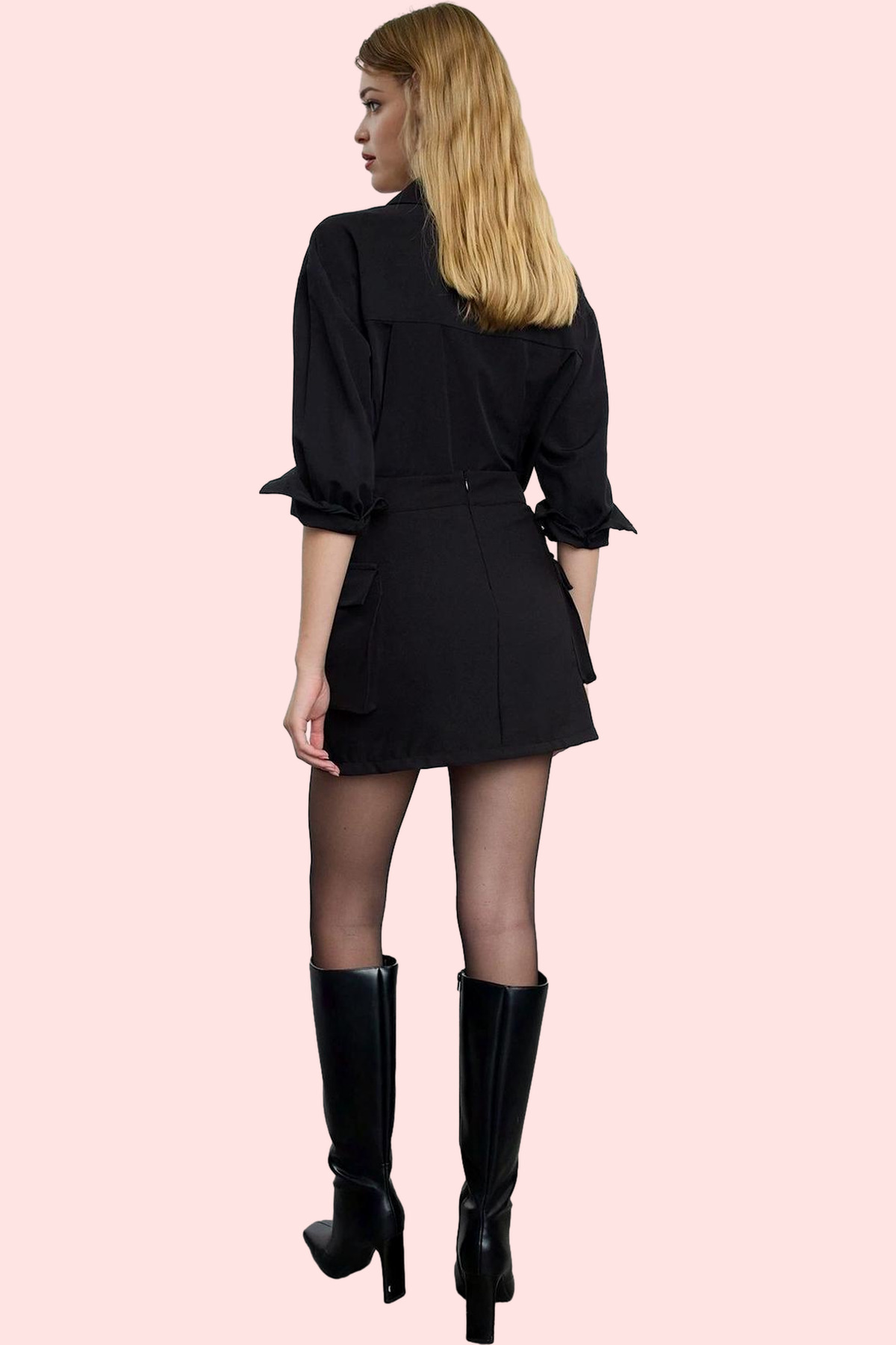 Bu sezonun trendlerinden biri olan siyah yüksek bel şort etek, dokuma kumaştan üretilmiş ve rahatlığıyla dikkat çekiyor. Finike dokuma tekniği ile üretilen etek, hem şık hem de konforlu bir deneyim sunuyor. Kısa boyu ve dar paçası ile modern ve cesur bir görünüm yakalamanızı sağlayan bu model, yüksek belli yapısıyla vücut hatlarınızı güzel bir şekilde ortaya koyuyor. Günlük kullanım için ideal olan bu etek, farklı üst giyim parçalarıyla kombinlenerek çeşitli stillere uyum sağlayabilir.
