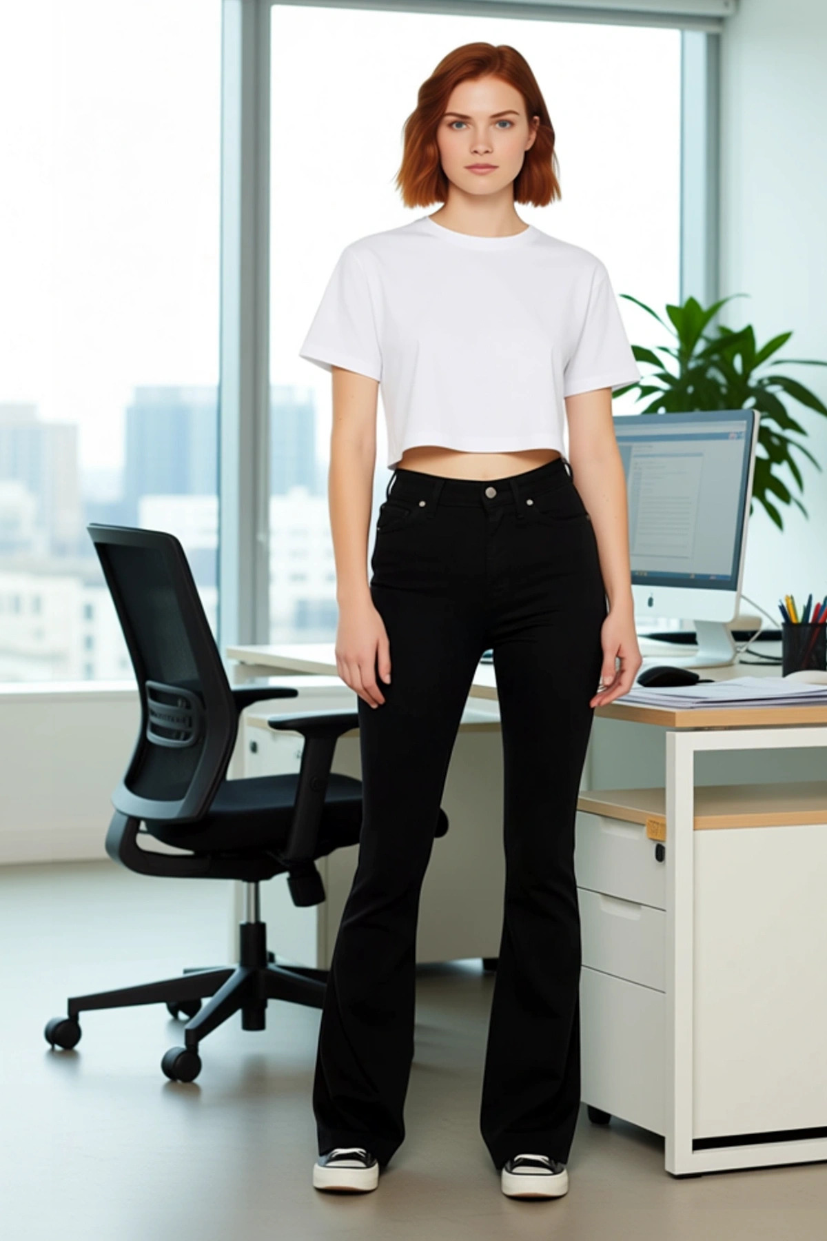 Bu kadın jean pantolonu, zarif yüksek bel kesimi ve göz alıcı ispanyol paça (flare) stili ile modern bir görünüm sunar. Solmayan siyah rengi, jean’e sofistike bir dokunuş katarken, %81 pamuk, %17 polyester ve %2 elastan içeren özel kumaş karışımı, hem dayanıklılık hem de üstün bir esneklik sağlar. Düz deseni, jean’in çok yönlü kullanımını destekler ve farklı üst giyim parçalarıyla kolayca kombinlenmesine olanak tanır. Bu jean, hem günlük şıklığı hem de rahatlığı bir arada arayan kadınlar için tasarlanmıştır. Klasik denim görünümünü modern bir yorumla sunan bu parça, gardırobunuzda zamansız bir yere sahip olacaktır. Bu jean, her kadının stilini tamamlayacak ve ona özgüvenli bir duruş kazandıracaktır. Jean’in yüksek bel özelliği, vücudu nazikçe sararak daha uzun ve ince bir silüet yaratır. Dizden itibaren genişleyen ispanyol paça detayı, hareketlerinize zarafet katar ve klasik bir estetik sunar. Düğme ve fermuar kapatma sistemi, güvenli ve pratik bir kullanım sunarken, beş cep detayı jean’in fonksiyonelliğini artırır. Comfort dokuma kumaşı, esnek yapısı sayesinde gün boyu maksimum konfor sağlar ve hareket özgürlüğünüzü kısıtlamaz. Bu jean, hem şık hem de rahat bir giyim deneyimi arayan kadınlar için idealdir. Günlük kullanım için mükemmel bir seçimdir ve her türlü aktivitede rahatlıkla giyilebilir. Bu siyah yüksek bel ispanyol paça jean, her mevsim için uygun bir seçenektir. İlkbahar ve yaz aylarında hafif bir bluz veya crop top ile, sonbahar ve kış aylarında ise şık bir kazak veya gömlek ile kombinleyebilirsiniz. Kombin önerisi olarak, bu jean’i basic bir beyaz tişört, belden oturtmalı bir blazer ceket ve platform topuklu ayakkabılarla tamamlayarak şık bir ofis stili yaratabilirsiniz. Daha rahat bir görünüm için ise salaş bir kazak ve sneaker’lar ile kombinleyebilirsiniz. Bu jean’in bakımı oldukça basittir; makinede düşük sıcaklıkta yıkanması önerilir.