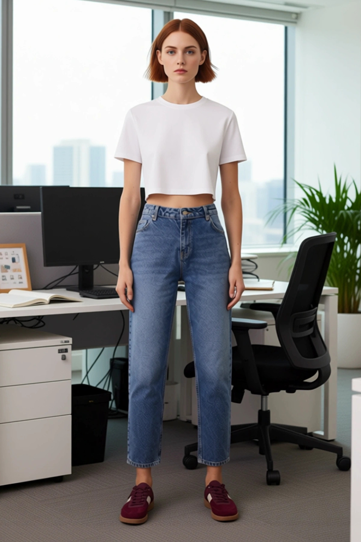 Bu kadın denim pantolonu, modern kadının gardırobuna şıklık ve konfor katmak için tasarlandı. Yüksek bel özelliği, vücut formunu zarifçe vurgularken, mom jean kesimi rahat bir kullanım sunar. %100 pamuktan üretilmiş olması, cildinize nefes aldıran, yumuşak ve doğal bir dokunuş sağlar. Düz mavi rengi ve sade deseni, zamansız bir şıklık sunarken, geniş paça detayı ise pantolona dinamik ve stil sahibi bir hava katar. Günlük kullanım için ideal olan bu pantolon, farklı üstler ve ayakkabılarla kolayca uyum sağlayarak çok yönlü kombinlere olanak tanır. Bu denim pantolon, hem rahatlığına düşkün hem de stilinden ödün vermek istemeyen kadınlar için mükemmel bir seçenektir. Pantolonun yüksek bel tasarımı, beli daha ince göstererek silüeti güzelleştirir. Mom jean kalıbı, hareket özgürlüğü sunarken, geniş paça detayı ise pantolona modern bir dokunuş katar. Düz deseni, farklı renk ve desenlerdeki üstlerle kolayca eşleştirilebilir. Comfort dokuma tipi sayesinde kumaşın yumuşaklığı ve esnekliği artırılmış, bu da gün boyu süren bir konfor sağlar. Bu özellikler, pantolonun hem şık hem de rahat olmasını garanti eder. Günlük kullanım için tasarlanmış bu kot pantolon, dinamik ve aktif yaşam tarzınıza uyum sağlayacak şekilde üretilmiştir. Bu denim pantolon, her mevsimde rahatlıkla giyilebilir. İlkbahar ve yaz aylarında basic tişörtler, crop toplar ve spor ayakkabılarla kombinleyerek rahat bir günlük stil oluşturabilirsiniz. Sonbahar ve kış aylarında ise kazaklar, sweatshirtler ve botlarla şık bir görünüm yakalayabilirsiniz. Özellikle açık renkli bir gömlek, loafer ayakkabılar ve bir blazer ceket ile daha klasik bir tarz elde edebilirsiniz. Pantolonun bakımı için, ters çevirerek ve benzer renklerle birlikte düşük sıcaklıkta yıkamanız önerilir.