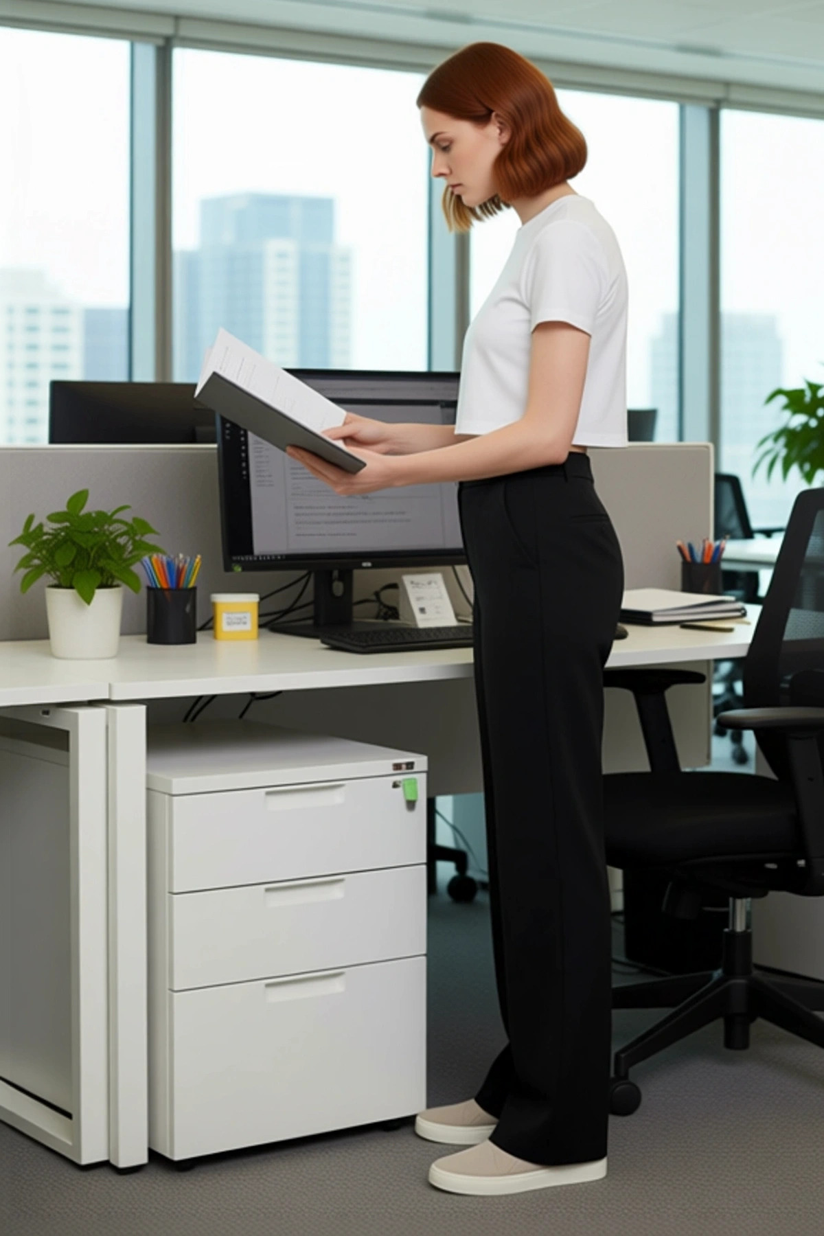 Modern ve şık bir görünüm sunan bu kadın pantolonu, gardırobunuzun temel taşlarından biri olmaya aday. Yüksek bel kesimi, vücudunuzu nazikçe sararak zarif bir silüet oluşturur. Geniş paça detayı, hem rahatlık hem de stil sahibi bir duruş sağlar. %68 pamuk, %27 pamuk/viskoz ve %5 elastan içeren özel kumaş karışımı, pantolona hem dayanıklılık hem de esneklik kazandırır. Düz siyah rengi ve kaliteli gabardin dokusu, bu pantolonu her türlü kıyafetle kolayca uyumlu hale getirir. Günlük kullanım için ideal olan bu ürün, cool ve konforlu bir tarz benimseyen kadınlar için özenle tasarlanmıştır. Dokuma kumaşın kalitesi, uzun süreli kullanım sunarken, elastan içeriği gün boyu hareket özgürlüğü ve rahatlık sağlar. Bu pantolon, zamansız bir parça olarak her kadının dolabında yerini almalıdır. Pantolonun öne çıkan özellikleri arasında yüksek bel tasarımı bulunur; bu sayede bel bölgesi daha ince ve zarif görünür. Geniş paça kesimi, hareket özgürlüğünü maksimize ederken aynı zamanda şık bir görünüm sunar. Gabardin dokusu, pantolona hem sağlamlık hem de sofistike bir hava katar. Elastan içeriği, pantolonun vücuda kusursuz bir şekilde oturmasını sağlar ve gün boyunca maksimum konfor sunar. Bu pantolon, hem şıklığı hem de rahatlığı bir arada arayan kadınlar için ideal bir tercihtir. Casual ve günlük kullanım için mükemmel bir seçenektir. Bu ürün, her kadının stilini tamamlayacak bir parçadır. Bu pantolon, dört mevsim boyunca rahatlıkla kullanılabilir. İlkbahar ve sonbaharda basic tişörtler ve hafif kazaklarla, yazın ise crop top’lar veya keten gömleklerle kombinleyebilirsiniz. Kışın ise şık bir kazak ve botlarla tamamlayarak sıcak ve stil sahibi bir görünüm elde edebilirsiniz. Kombin önerisi olarak, bu pantolonu beyaz bir gömlek, topuklu ayakkabı ve zarif bir çanta ile tamamlayarak ofis şıklığı yakalayabilirsiniz. Alternatif olarak, grafik baskılı bir tişört ve spor ayakkabılarla daha rahat bir günlük stil oluşturabilirsiniz. Pantolonun bakımı için özel bir talimat bulunmamaktadır, ancak genel kumaş bakım kurallarına uyulması tavsiye edilir.
