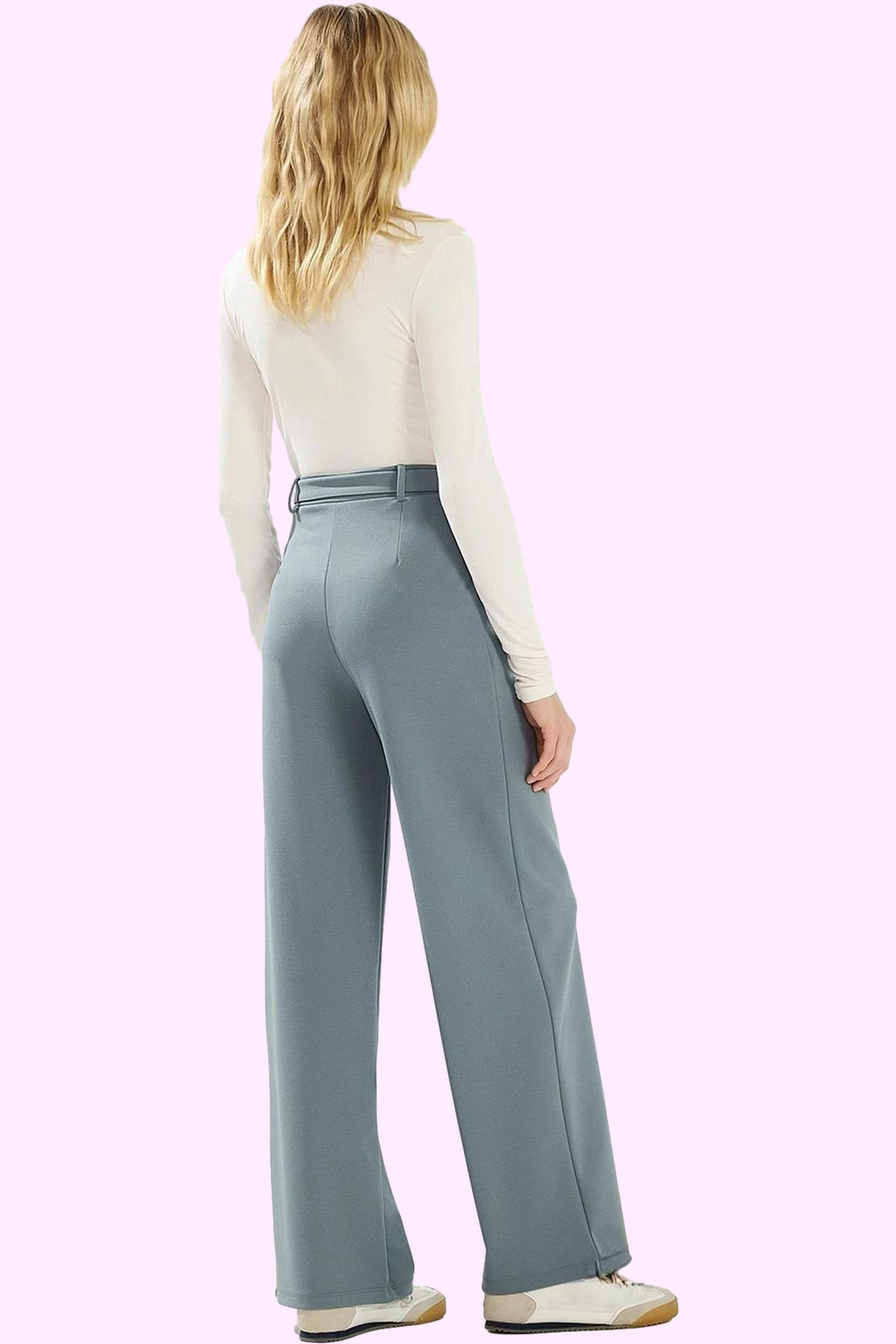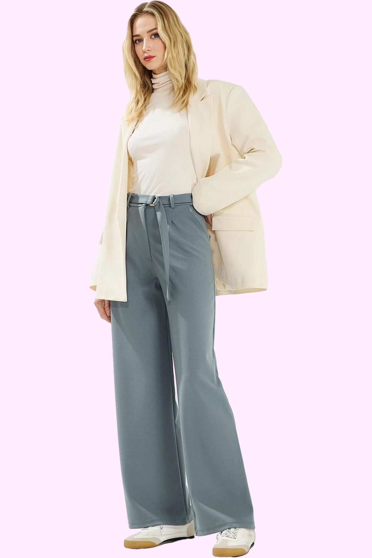 Kadın Kemerli Geniş Paça Dokuma Pantolon Fonksiyonel Dayanıklı Kaliteli Konforlu Estetik Şık