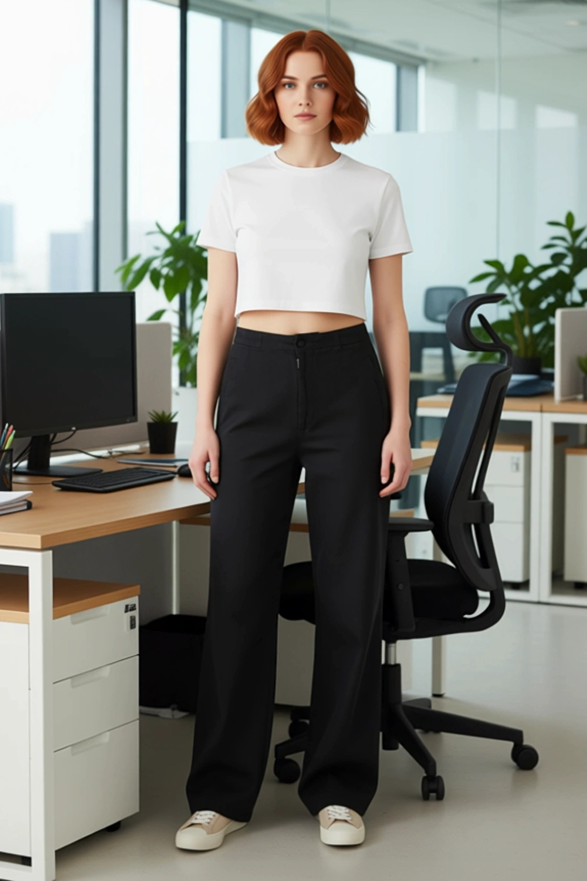 Bu kadın pantolonu, modern ve rahat bir stil arayanlar için tasarlandı. Yüksek bel kesimi, vücut hatlarını güzelce vurgulayarak daha uzun ve zarif bir görünüm sunar. Geniş paça modeli, hareket özgürlüğü sağlarken aynı zamanda şık bir siluet oluşturur. %100 pamuk materyali, nefes alabilen yapısı ve yumuşak dokusuyla gün boyu maksimum konfor sunar. Siyah rengi, her türlü kıyafetle kolayca uyum sağlayabilen klasik ve zamansız bir seçenektir. Cep detayları, pantolona fonksiyonel bir dokunuş katarken, sade deseniyle minimalist bir estetik sunar. Bu pantolon, hem günlük kullanımda hem de daha özel davetlerde rahatlıkla tercih edilebilir. Kaliteli kumaşı ve modern tasarımı ile dolabınızın kurtarıcı parçası olacak. Pantolonun yüksek bel özelliği, bel çizgisini belirginleştirerek daha fit bir görünüm sağlar. Geniş paça kesimi, bacakları daha ince gösterirken aynı zamanda rahat bir kullanım sunar. %100 pamuk kumaş, cildinize nazik davranır ve hava geçirgenliği sayesinde özellikle sıcak havalarda ferah bir his verir. Cep detayları, hem pratik bir kullanım sunar hem de pantolonun genel tasarımına estetik bir katkı sağlar. Bu pantolon, hareketlerinizi kısıtlamadan gün boyu rahat etmenizi sağlayacak şekilde tasarlanmıştır. Yumuşak dokusu, cildinizde hoş bir his bırakır ve uzun süreli kullanımlarda bile konforundan ödün vermez. Şık ve fonksiyonel detayları ile her kadının gardırobunda olması gereken bir parça. Bu pantolon, dört mevsim boyunca rahatlıkla kullanılabilir. İlkbahar ve yaz aylarında hafif bir bluz ve sandaletlerle kombinleyerek ferah bir stil yakalayabilirsiniz. Sonbahar ve kış aylarında ise kazak ve botlarla tamamlayarak sıcak ve şık bir görünüm elde edebilirsiniz. Beyaz bir gömlek ve topuklu ayakkabılarla ofis şıklığı yakalayabilirsiniz. Bakımı oldukça kolaydır; makinede yıkanabilir ve düşük ısıda ütülenebilir. Sererek kurutulması tavsiye edilir. Bu pantolon, çok yönlü kullanımı ve pratik bakımı ile gardırobunuzun vazgeçilmez bir parçası olacaktır.