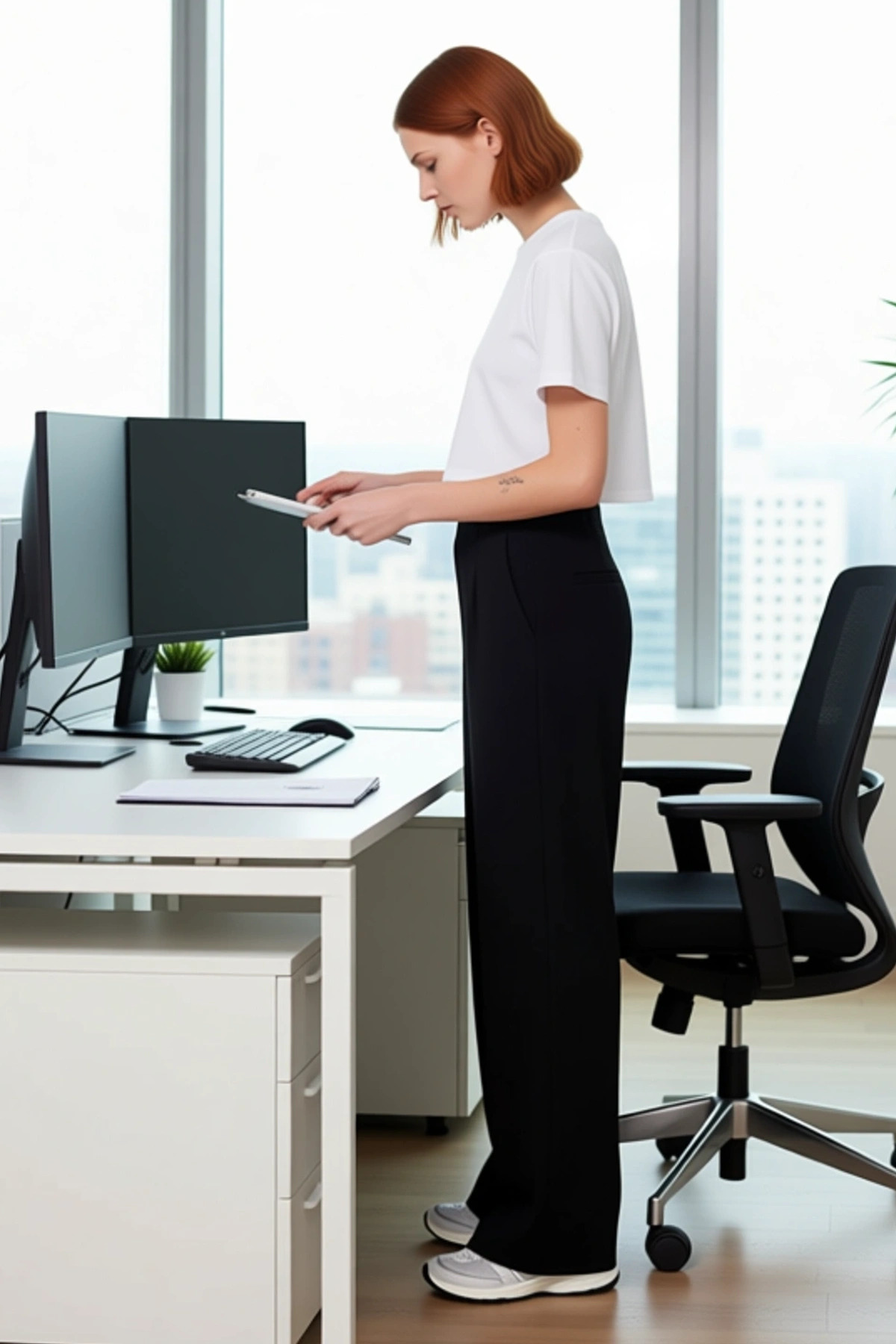 Bu kadın pantolonu, modern ve sofistike bir stil arayanlar için mükemmel bir seçimdir. Yüksek bel özelliği, bacakları daha uzun gösterirken, geniş paça kesimi ise rahat bir kullanım ve zarif bir görünüm sunar. Düz siyah rengi, pantolonu son derece kullanışlı kılar ve farklı kombinlere uyum sağlamasını kolaylaştırır. Pantolonun ana malzemesi %96 polyester ve %4 elastan karışımından oluşmaktadır. Bu özel karışım, kumaşa hem dayanıklılık hem de esneklik kazandırır, böylece gün boyu konforlu bir kullanım sağlar. Scuba krep dokuma tipi, kumaşa pürüzsüz bir yüzey ve hafif bir parlaklık verir, bu da pantolona premium bir his katar. Pantolon, hem casual hem de smart koleksiyonlar için idealdir ve her kadının gardırobunda bulunması gereken temel parçalardan biridir. Bu pantolonun tasarımında öne çıkan özellikler, modern kadının ihtiyaçlarına cevap verir. Yüksek bel detayı, vücut şeklini güzelce sarar ve zarif bir silüet oluşturur. Geniş paça ise, hareket özgürlüğü sağlayarak gün boyu rahatlık sunar. Pantolonun bel kısmında yer alan lastik detayı, ekstra bir konfor katmanı ekler ve pantolonun vücuda tam oturmasını sağlar. Bu tasarım, hem şık hem de pratik bir kullanım sunar. Pantolonun kesimindeki incelikler, ona modern bir dokunuş katarak sıradan bir pantolondan daha fazlasını sunar. Bu özellikler, pantolonu hem iş hayatında hem de sosyal etkinliklerde rahatlıkla tercih edilebilir kılar. Bu pantolon, özellikle sonbahar ve kış aylarında rahatlıkla kullanılabilir. Kumaşının dokusu ve kalınlığı, bu mevsimlerde sıcaklık ve konfor sağlar. Kombin önerisi olarak, bu pantolonu basic bir V yaka kazak veya şık bir ipek bluz ile tamamlayabilirsiniz. Üzerine giyeceğiniz deri ceket veya trençkot ile hem şık hem de modern bir görünüm elde edebilirsiniz. Ayakkabı seçimi olarak, sivri burunlu topuklu ayakkabılar, şık botlar veya zarif babetler ile farklı stiller yaratabilirsiniz. Pantolonun bakımı için, düşük sıcaklıkta ve hassas programda yıkanması tavsiye edilir.