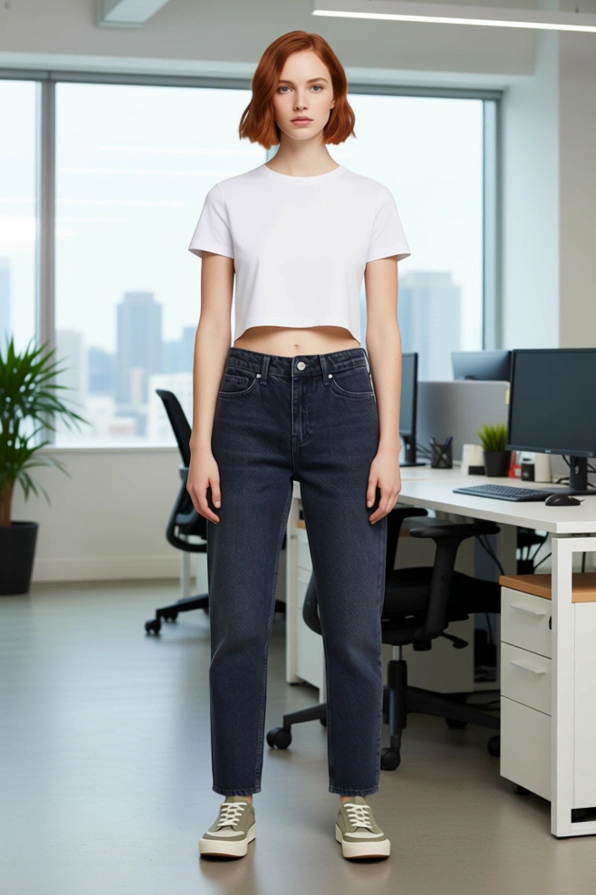 Bu kadın pantolonu, modern ve rahat bir stil arayanlar için mükemmel bir seçenektir. Yüksek bel detayı, beli vurgulayarak feminen bir silüet oluştururken, mom kesim kalıbı gün boyu konfor sunar. %100 pamuk materyali, kumaşın nefes alabilirliğini artırarak sıcak havalarda bile serin ve rahat hissetmenizi sağlar. Denim kumaşın dayanıklılığı, bu pantolonu uzun ömürlü bir yatırım haline getirir. Düz deseni, pantolonun her türlü üst ve ayakkabı ile kolayca uyum sağlamasına olanak tanır, bu da onu gardırobunuzun çok yönlü bir parçası yapar. Bu pantolon, hem günlük şıklığınızı tamamlamak hem de rahatlığınızdan ödün vermeden stil sahibi görünmek isteyen kadınlar için idealdir. Cool ve konforlu bir persona yansıtan bu parça, jean koleksiyonunuzun favorisi olmaya adaydır. Bu pantolonun en belirgin özelliklerinden biri, yüksek bel kesimidir. Bu tasarım, bel çizgisini yukarı taşıyarak daha uzun ve zarif bir görünüm sunar. Mom kesim, kalça ve bacak bölgesinde daha bol bir yapıya sahipken, paçalara doğru hafifçe daralır. Bu kesim, hem rahatlık hem de modern bir estetik sunar. %100 pamuk kumaş, cildinize nazikçe dokunur ve gün boyu süren bir konfor sağlar. Rigid denim dokuması, pantolona sağlam bir yapı kazandırır ve zamanla vücudunuza uyum sağlayarak daha da rahat hale gelir. Bu pantolon, casual ortamlarda şıklığınızı ön plana çıkaracak ve rahatlığınızdan ödün vermeyeceğiniz bir seçenektir. Bu pantolon, ilkbahar, yaz ve sonbahar gibi her mevsimde rahatlıkla giyilebilir. Günlük kullanım için ideal olan bu pantolonu, basic tişörtler, crop toplar veya bol kesim sweatshirtler ile kombinleyebilirsiniz. Altına beyaz spor ayakkabılar, botlar veya sandaletler tercih ederek farklı stiller yaratabilirsiniz. Denim ceketler veya oversize gömleklerle tamamlayarak cool bir görünüm elde edebilirsiniz. Pantolonun bakımı oldukça pratiktir; soğuk suyla ve benzer renklerle makinede yıkanabilir. Düşük ısıda ütüleyerek pantolonunuzun ömrünü uzatabilir ve ilk günkü gibi görünmesini sağlayabilirsiniz.