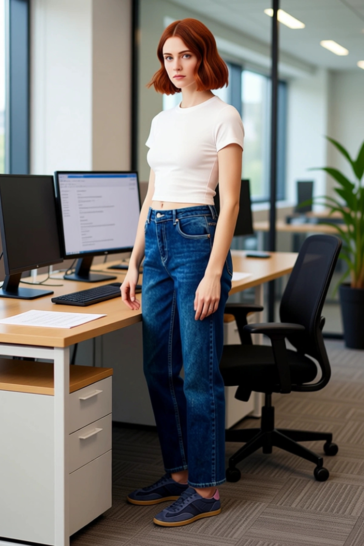 Kadınlar için tasarlanmış bu yüksek bel straight fit denim jean, modern ve şık bir görünüm sunar. %99 pamuk ve %1 elastan karışımı, kumaşa hem yumuşaklık hem de esneklik kazandırır. Bu sayede pantolon, vücuda nazikçe otururken hareket kabiliyetini de artırır. Düz kesim kalıbı, klasik ve zamansız bir silüet oluşturarak her tarza hitap eder. Koyu mavi denim rengi, pantolona derinlik ve karakter katarak farklı kombinlere uyum sağlamasını kolaylaştırır. Düz deseni, minimalist bir estetik sunarak diğer giysilerle kolayca eşleşir. Bu jean, günlük kullanım için idealdir ve rahatlığı ön planda tutar. Bu jean’in yüksek bel tasarımı, bel çizgisini vurgulayarak daha feminen bir silüet yaratır. Straight fit kesimi, bacak boyunca düz bir hat izleyerek dengeli bir görünüm sağlar. Elastan içeriği, pantolonun gün boyu rahat kalmasını ve hareket ederken esnemesini sağlar. Yüksek kaliteli denim kumaşı, dayanıklılığı ve uzun ömürlü kullanımı garanti eder. Detaylı dikiş işçiliği ve kaliteli fermuar/düğme aksesuarları, ürünün genel zarafetini artırır. Bu jean, hem cool hem de konforlu bir duruş sergilemek isteyen kadınlar için mükemmel bir seçenektir. Bu denim jean, dört mevsim boyunca kullanıma uygundur. İlkbaharda hafif bir bluz ve sneakerlarla, yazın basic bir tişört ve sandaletlerle, sonbaharda triko bir kazak ve botlarla, kışın ise kalın bir kazak ve çizmelerle kombinleyebilirsiniz. Beyaz bir tişört ve spor ayakkabılarla rahat bir hafta sonu stili oluşturabilir, şık bir gömlek ve topuklu ayakkabılarla daha resmi bir ortama uyum sağlayabilirsiniz. Pantolonun bakımı için nazik yıkama önerilir.