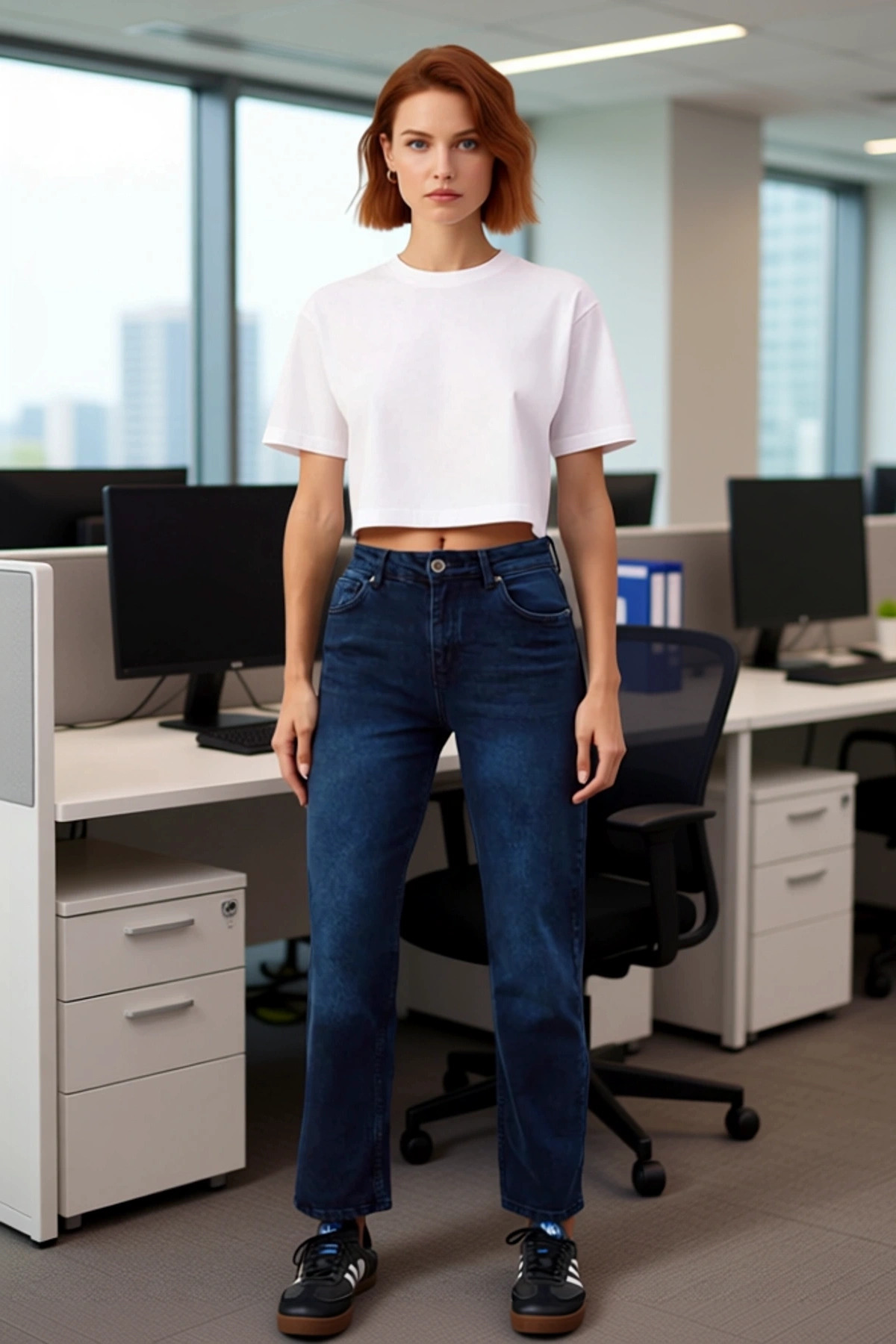 Kadınlar için tasarlanmış bu yüksek bel straight fit jean, modern ve zamansız bir stil sunar. Koyu mavi rengi ve düz kesimi ile her gardıropta olması gereken bir parça. %99 pamuk ve %1 elastan karışımı, gün boyu süren bir konfor ve esneklik sağlar. Bu jean, vücudu sıkmadan saran yapısıyla rahat bir kullanım sunarken, yüksek bel detayıyla da beli daha ince gösterir. Düz paça kesimi, her türlü ayakkabı ile uyum sağlayarak farklı kombinlere olanak tanır. Denim kumaşın doğal dokusu ve dayanıklılığı, bu jean’i uzun yıllar boyunca kullanabileceğiniz bir yatırım haline getirir. Günlük şıklığınızı tamamlayacak bu jean, hem rahat hem de stil sahibi bir görünüm arayanlar için idealdir. Bu jean’in yüksek bel tasarımı, vücut hatlarını güzelce vurgular ve daha uzun bir silüet yaratır. Straight fit kesimi, bacak boyunca düz bir hat izleyerek modern bir görünüm sunar. Comfort dokuma tipi, kumaşın yumuşaklığını ve esnekliğini artırarak hareket kabiliyetinizi destekler. Bu jean, hem gündelik kullanımda hem de daha şık kombinlerde rahatlıkla tercih edilebilir. Cool ve comfort odaklı tasarımı, kullanıcıya hem şık hem de rahat hissetme olanağı sunar. Bu jean, jean pantolon anlayışınızı yeniden tanımlayacak detaylara sahiptir. Bu jean, dört mevsim boyunca giyilebilir. İlkbaharda basic tişörtler ve sneaker’larla, yaz aylarında sandaletler ve crop top’larla, sonbaharda kazaklar ve botlarla, kışın ise kalın trikolar ve çizmelerle kombinleyebilirsiniz. Bu jean’i, beyaz bir basic tişört, spor ayakkabı ve bomber ceket ile tamamlayarak rahat bir hafta sonu stili oluşturabilirsiniz. Daha şık bir görünüm için, ipek bir bluz, topuklu ayakkabı ve zarif bir kolye ile kombinleyebilirsiniz. Bakımı kolaydır, makinede yıkanabilir ve düşük ısıda ütülenebilir.
