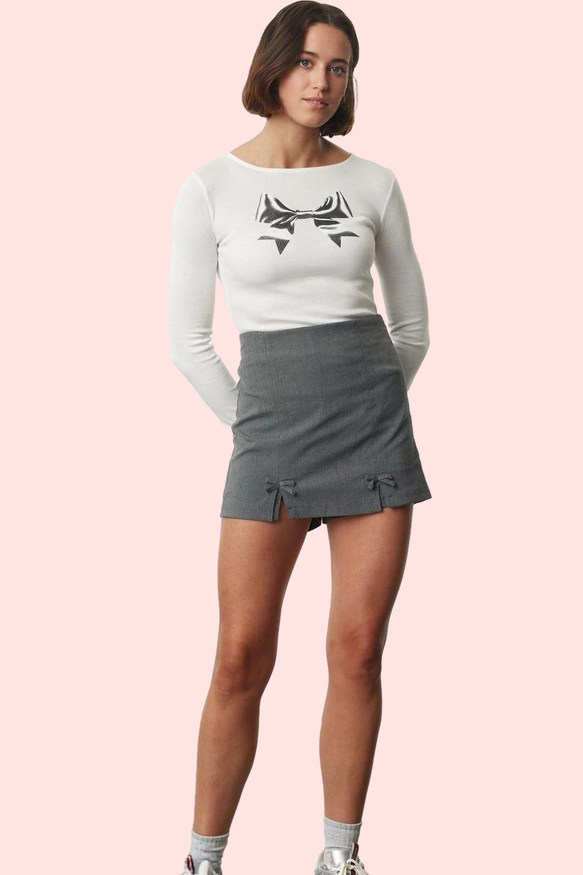 Rahatlığı ve şıklığı bir araya getiren bu yüksek belli gri mini şort etek, yaz aylarının vazgeçilmez parçası olacak! Dokuma poliviskon kumaştan üretilen etek, nefes alabilir yapısı ile gün boyu konfor sunuyor. Kısa boyu ve dar paçası ile modern bir siluet oluştururken, yanlardaki fiyonk detayları ise şıklığınıza feminen bir dokunuş katıyor. Düz tasarımıyla her türlü üst giyimle kolayca kombinlenebilen bu etek, tişörtlerden bluz’lara, crop top’lardan gömlek’lere kadar geniş bir yelpazede kullanım olanağı sunuyor.