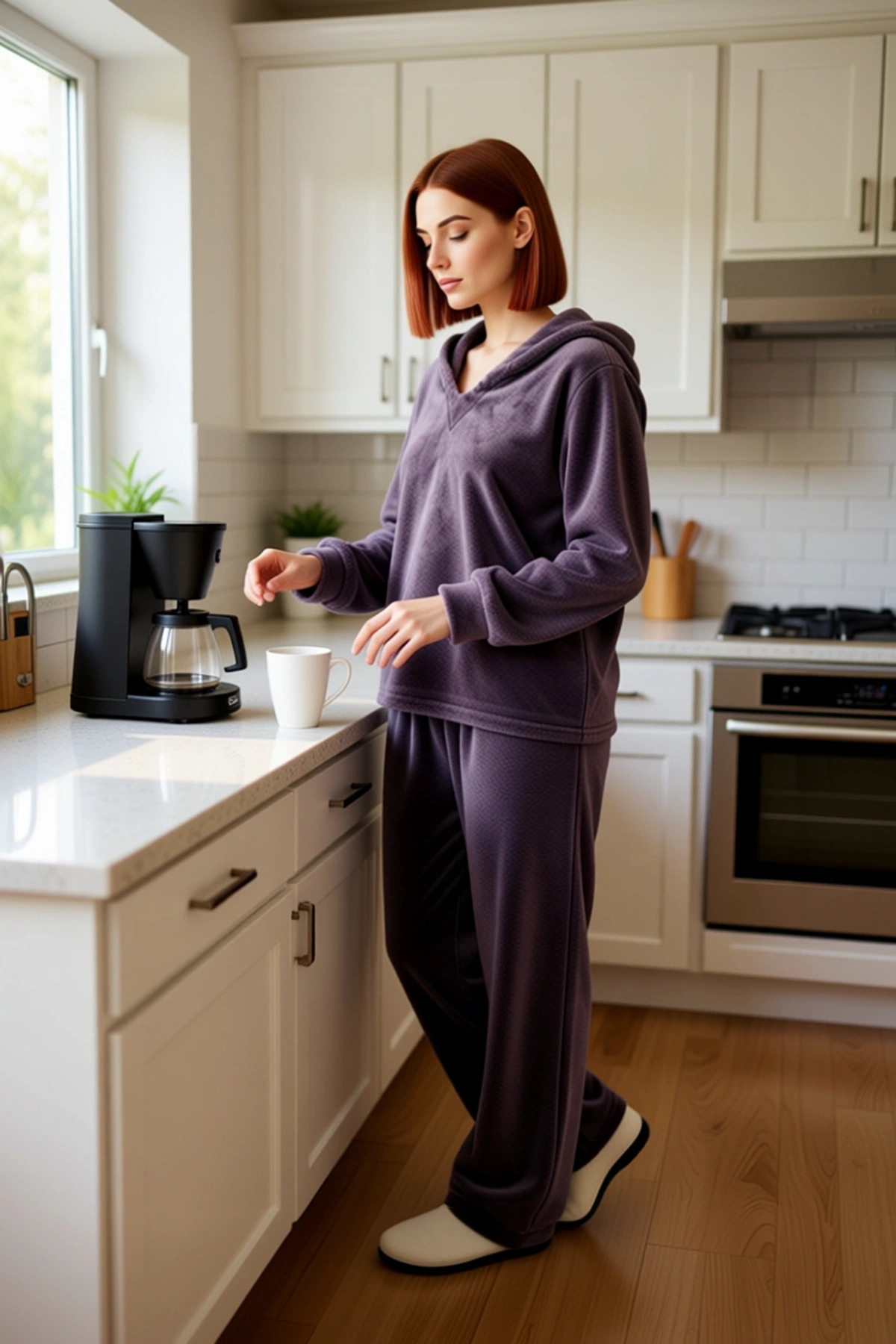 Kadın Yumuşak Peluş Kapüşonlu Pijama Takımı Fonksiyonel Dayanıklı Kaliteli Konforlu Modern