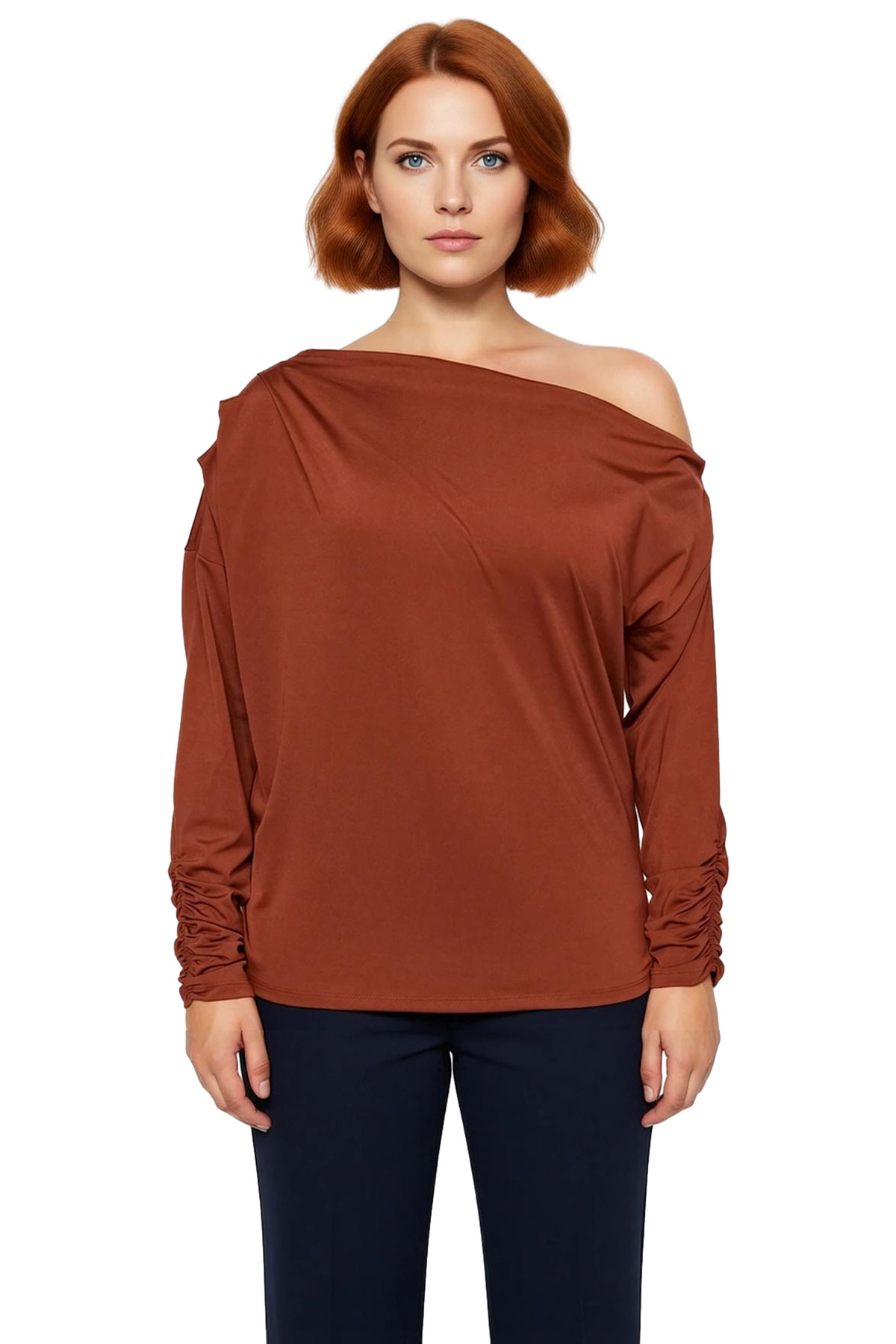 Bu örme bluz, modern ve zarif bir görünüm arayan kadınlar için idealdir. Asimetrik yaka detayı, klasik bluz tasarımlarına yenilikçi bir dokunuş katarken, düşük kol kesimi rahat bir kullanım sunar. Bluzun esnek örme kumaşı, gün boyu konfor sağlarken vücuda nazikçe uyum sağlar. Düz deseni ve sade tasarımı sayesinde, bu bluz farklı stil ve ortamlara kolayca uyum sağlayabilir. Crop boyu, yüksek belli pantolonlar veya eteklerle mükemmel bir uyum yakalayarak modern bir siluet oluşturur. Uzun kol boyu, serin havalarda ek sıcaklık sağlarken, manşetlerdeki büzgü detayı zarif bir bitiş sunar. %92 polyester ve %8 elastan karışımı kumaş, hem dayanıklılık hem de esneklik sunarak giysinin uzun ömürlü olmasını sağlar. Bu bluz, casual ve günlük kullanım için tasarlanmış olup, moda trendlerini yakından takip eden kadınların gardıroplarında mutlaka bulunması gereken bir parçadır. Büyük beden koleksiyonuna dahil olması, her vücut tipine hitap etmesini ve şıklığı herkes için erişilebilir kılmasını sağlar. İlkbahar ve sonbahar sezonları için ideal bir seçim olan bu bluz, hem şık hem de rahat bir görünüm elde etmek isteyen her kadın için vazgeçilmez olacaktır. Üretim yeri Türkiye’dir. Bu bluz, gardırobunuzdaki diğer parçalarla kolayca kombinlenebilir ve her zaman şık görünmenizi sağlar. Özel günlerinizde veya günlük hayatınızda rahatlıkla tercih edebileceğiniz bu bluz, stilinize sofistike bir dokunuş katacaktır. Yıkama talimatlarına uyulduğu sürece uzun yıllar boyunca ilk günkü görünümünü koruyacaktır. Bu ürün, modayı takip eden ve kendi stilini yaratmaktan hoşlanan kadınlar için özel olarak tasarlanmıştır. Kendinizi hem rahat hem de şık hissetmek istediğiniz her an bu bluzu tercih edebilirsiniz. Farklı aksesuarlarla zenginleştirerek kendi benzersiz tarzınızı ortaya koyabilirsiniz. Bu bluz, gardırobunuzun en sevilen parçalarından biri olmaya adaydır.