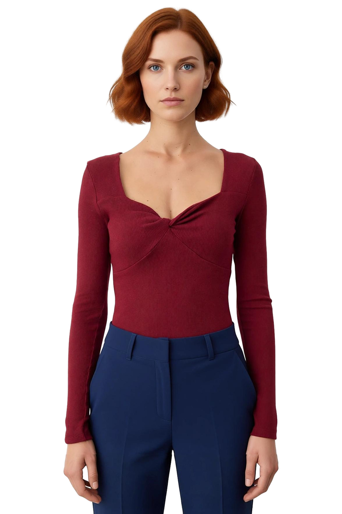 Bu şık ve modern bluz, kadınların gardıroplarına sofistike bir hava katmak için özel olarak tasarlandı. Kalp yaka detayı, zarif bir görünüm sunarken, vücuda oturan kesimi ise figürü güzelce vurguluyor. Esnek örme kumaşı sayesinde gün boyu üstün bir konfor sağlıyor ve hareket özgürlüğü sunuyor. Crop kesimi, modern ve trend bir stil yaratırken, uzun kollu tasarımı ise serin havalarda da kullanıma olanak tanıyor. Bu bluz, hem günlük şıklık için jean pantolonlarla hem de daha özel kombinler için eteklerle mükemmel bir uyum sağlıyor. Polyester, pamuk ve elastan karışımı, hem dayanıklılık hem de esneklik sunarak ürünün uzun ömürlü olmasını garantiliyor. Kolay bakımı ile de öne çıkan bu ürün, makinede yıkanabilir özelliği sayesinde pratik bir kullanım sunuyor. Kadınların kendilerini hem rahat hem de çekici hissetmelerini sağlayacak şekilde özenle üretilmiş bu bluz, her kadının dolabında bulunması gereken temel parçalardan biri. Ürün, kadınlara özel olarak tasarlanmış olup, her vücut tipine uyum sağlayacak şekilde üretilmiştir. Kumaşın dokusu, cilde nazik bir his verirken, vücuda oturan kesimi ise modern ve çekici bir silüet oluşturur. Bu bluz, şıklığı ve konforu bir arada arayan kadınlar için ideal bir seçimdir. Ürün, hem gündüz hem de gece kullanımı için uygundur ve farklı kombinlerle kolayca uyum sağlar. Kadınların kendilerini özgüvenli ve güzel hissetmelerini destekleyen bu bluz, gardıroplarının temel taşlarından biri olacaktır. Ürün, kadınların stil tercihlerine hitap eden, modern ve zarif bir tasarıma sahiptir. Kumaşın kalitesi, uzun süreli kullanıma olanak tanır ve ürünün ilk günkü görünümünü korumasına yardımcı olur. Bu bluz, kadınların her ortamda dikkat çekmesini sağlayacak bir parçadır.