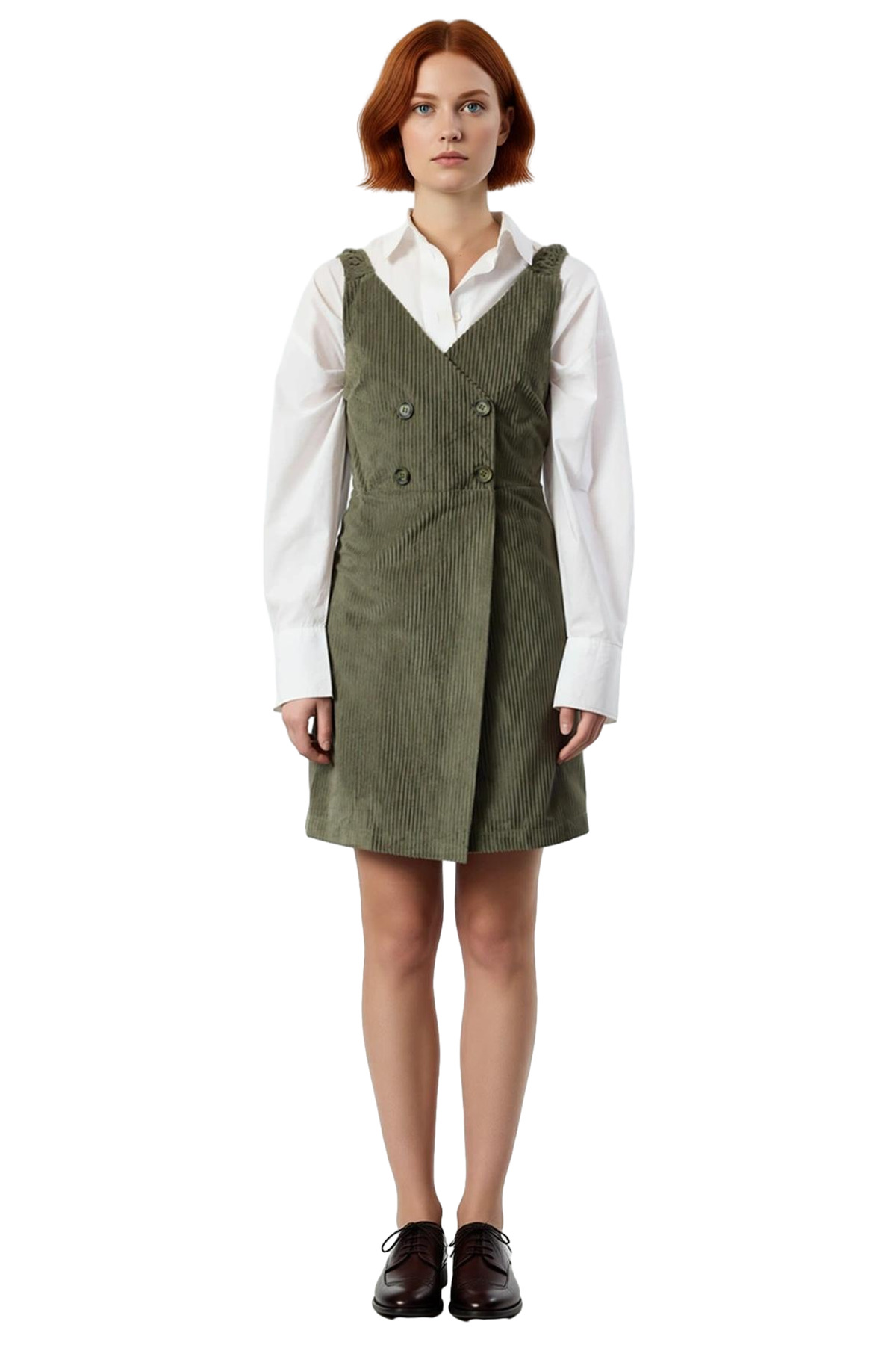 Kadınlar İçin özel olarak tasarlanan bu haki renk kadife jile elbise, düz deseniyle sofistike bir duruş sergiler. Yüksek kaliteli %100 polyester materyali sayesinde Cool & Comfort hissini gün boyu yaşatırken, dokuma kadife kumaşın benzersiz dokusu lüks bir görünüm sunar. Kolsuz ve askılı yapısı, farklı bluz ve kazaklarla kolayca kombinlenebilir, böylece kişisel tarzınızı yansıtma özgürlüğü tanır. Kış modasının en gözde parçalarından biri olan bu mini boy elbise, hem rahatlığı hem de şıklığı bir arada arayan kadınlar için ideal bir seçimdir.