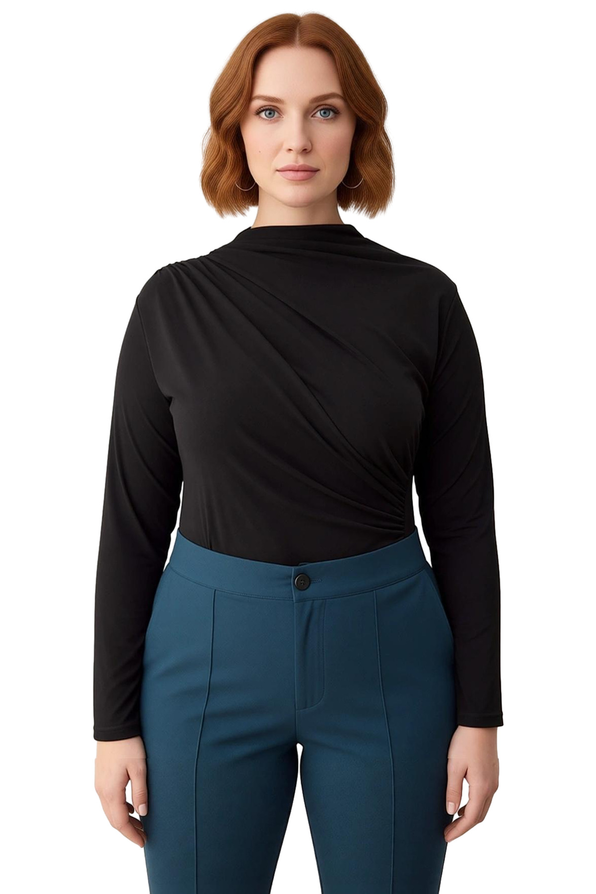 Bu üst, modern kadının stilini yansıtan, zarif ve fonksiyonel bir tasarıma sahiptir. Balıkçı yaka detayı, soğuk havalarda sıcaklık sağlarken, aynı zamanda sofistike bir estetik sunar. Uzun kollu yapısı, her mevsimde kullanıma uygunluk kazandırır ve gündelik şıklığı tamamlar. Ürünün öne çıkan özelliği, yan kısmında yer alan dikkat çekici büzgü detaylarıdır. Bu büzgüler, bluzun genel görünümüne dinamizm katarken, vücut hatlarını ustaca vurgulayarak daha çekici bir siluet oluşturur. Örme kumaşın sunduğu yumuşaklık ve esneklik, gün boyu süren bir konfor vaat eder. %100 polyester materyal bileşeni, ürünün uzun ömürlü olmasını sağlarken, aynı zamanda kolay bakım imkanı sunar. Düz desenli tasarımı, bu bluzu farklı kombinler için ideal bir parça haline getirir; ister jean pantolonlarla ister daha resmi pantolonlarla eşleştirin, her zaman şık görüneceksiniz. Casual/günlük kullanım için mükemmel bir seçenek olan bu bluz, özellikle ilkbahar ve sonbahar aylarında gardırobunuzun vazgeçilmez bir parçası olacaktır. Kadınlar için özel olarak tasarlanmış bu bluz, hem rahatlığını ön planda tutan hem de stilinden ödün vermek istemeyenler için idealdir. Fitted (vücuda oturan) kalıbı, vücudu nazikçe sararak zarif bir duruş sergiler. Standart kol tipi ve regular boyu, klasik ve zamansız bir görünüm sunar. Türkiye’de üretilmiş olan bu ürün, yıkama talimatlarına dikkat edildiğinde uzun yıllar ilk günkü görünümünü koruyacaktır. Sandy dokuma tipi, kumaşa özgün bir doku kazandırarak ürüne ayrı bir karakter katar. Bu bluz ile hem rahatlığın hem de şıklığın tadını çıkaracaksınız. Bu ürün, kullanıcısına hem gündelik hayatta hem de daha özel anlarda şıklık ve konforu bir arada sunmayı hedefler. Ürünün tasarımı, her vücut tipine uyum sağlayacak şekilde düşünülmüştür, bu da onu daha geniş bir kullanıcı kitlesi için cazip hale getirir.