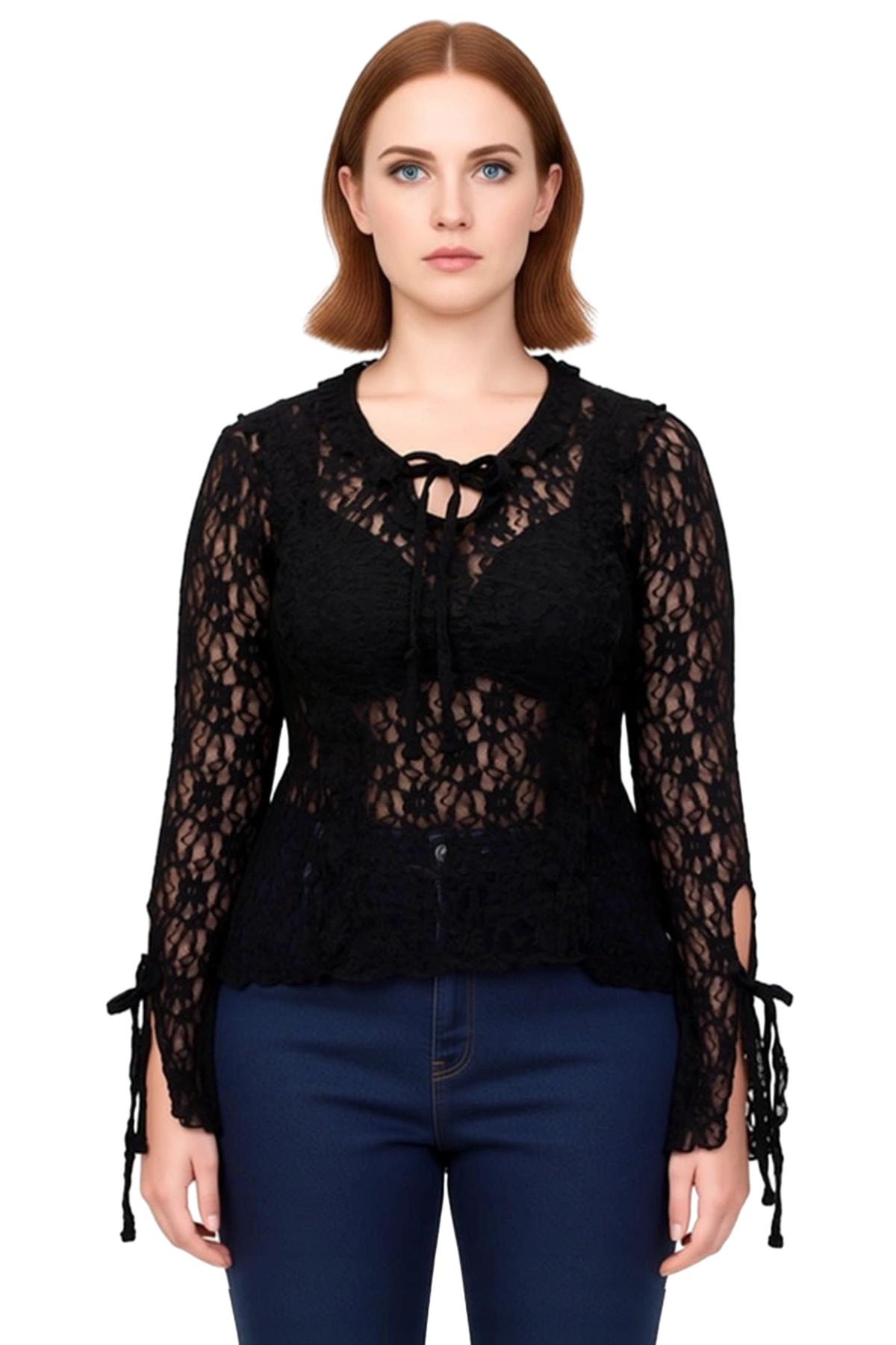 Bu özel tasarım bluz, modern kadının zarafetini ve şıklığını ön plana çıkaracak şekilde üretilmiştir. V yaka kesimi, boyun çizgisini zarifçe vurgularken, uzun kolları ve kol uçlarındaki bağlama detayları ürüne hareketli bir stil katıyor. Tamamen dantel dokuma tekniğiyle üretilmiş olan bu bluz, %100 polyester ve pamuk karışımı kumaşı sayesinde hem nefes alabilir hem de yumuşak bir dokuya sahiptir. Regular kalıbı, her vücut tipine uyum sağlayarak gün boyu konfor sunar. Düz deseni, ürünü daha da çekici hale getirirken, casual ve günlük kullanım için ideal bir seçenektir. İlkbahar ve sonbahar aylarında rahatlıkla kullanabileceğiniz bu bluz, feminen bir duruş sergilemek isteyen her kadın için uygundur. Türkiye’de üretilen bu ürün, kaliteli işçiliği ve dikkat çekici detaylarıyla gardırobunuzun vazgeçilmez bir parçası olmaya aday. Ürünün bakımı için Hassas Yıkama yıkama talimatlarına uyulması tavsiye edilir. Bu bluz, jean pantolonlar, taytlar veya şık eteklerle kombinlenerek farklı ortamlarda kullanılabilir. Özellikle, gece davetlerinde veya özel buluşmalarda, şık bir alt giyim ve topuklu ayakkabılarla tamamlandığında göz alıcı bir görünüm sunar. Günlük kullanımda ise, rahat bir jean ve spor ayakkabılarla daha spor ve şık bir tarz yakalanabilir. Ürünün dantel yapısı, ışığı güzel yansıtarak daha dikkat çekici bir görünüm sağlar. Bu bluz, hem estetik hem de fonksiyonel özellikleriyle öne çıkıyor. Kumaşının hafifliği ve yumuşaklığı, cildinizde rahat bir his bırakır. Bu ürün, stil sahibi ve kendine güvenen kadınlar için tasarlanmıştır. Ürünün genel görünümü, modern ve sofistike bir çizgiye sahiptir. Bu bluz, hem gündüz hem de gece kullanıma uygun olmasıyla da dikkat çekiyor. Ürünün detayları, özenle işlenmiş olup, kalitesini yansıtmaktadır.