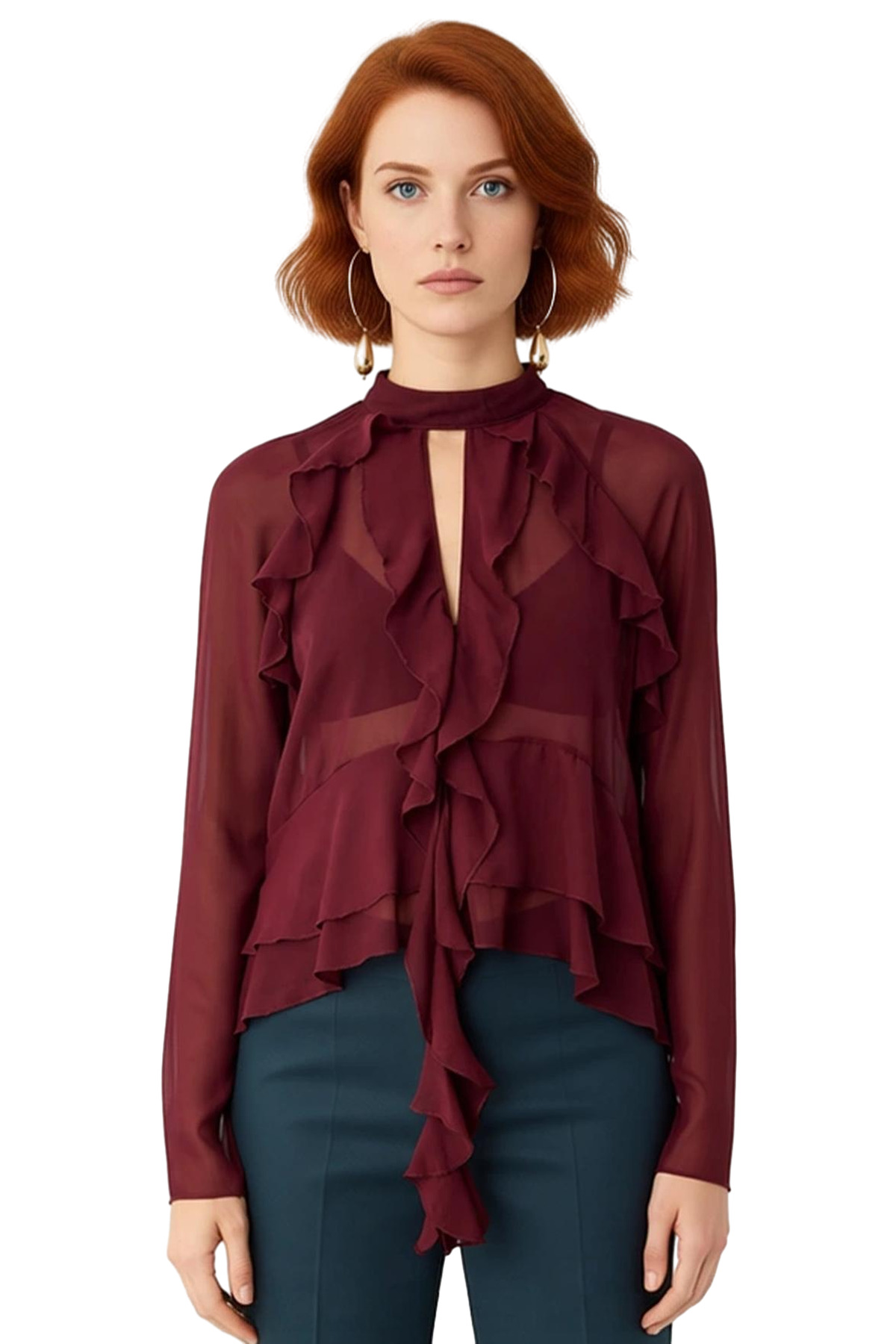 Özel davetler ve şık buluşmalar için tasarlanmış bu bluz, kadınların zarafetini ve stilini ön plana çıkarıyor. Dik yaka detayı, ürüne modern ve sofistike bir dokunuş katarken, ön kısmındaki akıcı fırfırlar hareketli ve dikkat çekici bir siluet oluşturuyor. Reglan kol kesimi, rahat bir kullanım sunarken, uzun kollu tasarımı serin havalarda dahi şıklığı garantiliyor. Hafif ve dökümlü şifon kumaşı, teninizde yumuşak bir his bırakarak konforlu bir deneyim sunuyor. %100 polyester içeriği, ürünün uzun ömürlü olmasını ve kolay bakımını sağlıyor. Kış sezonuna uygun olarak tasarlanan bu bluz, gardırobunuza sofistike bir parça ekleyecektir. Türkiye’de üretilen bu ürün, kalitesi ve işçiliği ile öne çıkıyor. Bu bluz, kadınların kendilerini özel ve çekici hissetmeleri için özenle hazırlandı. Farklı alt giyim seçenekleriyle kolayca uyum sağlayarak kişisel stilinizi yansıtmanıza olanak tanır. İster klasik bir pantolonla ister şık bir etekle kombinleyerek etkileyici bir görünüm elde edebilirsiniz. Moda trendlerini takip eden ve stilini ön plana çıkarmak isteyen her kadın için ideal bir seçimdir. Ürünün bakım talimatlarına dikkat edildiğinde, uzun yıllar boyunca ilk günkü zarafetini koruyacaktır. Bu bluz, sadece bir giyim parçası olmanın ötesinde, bir stil beyanıdır. Kendiniz için veya sevdikleriniz için unutulmaz bir hediye seçeneği olabilir. Bu bluz ile girdiğiniz her ortamda fark yaratacaksınız.