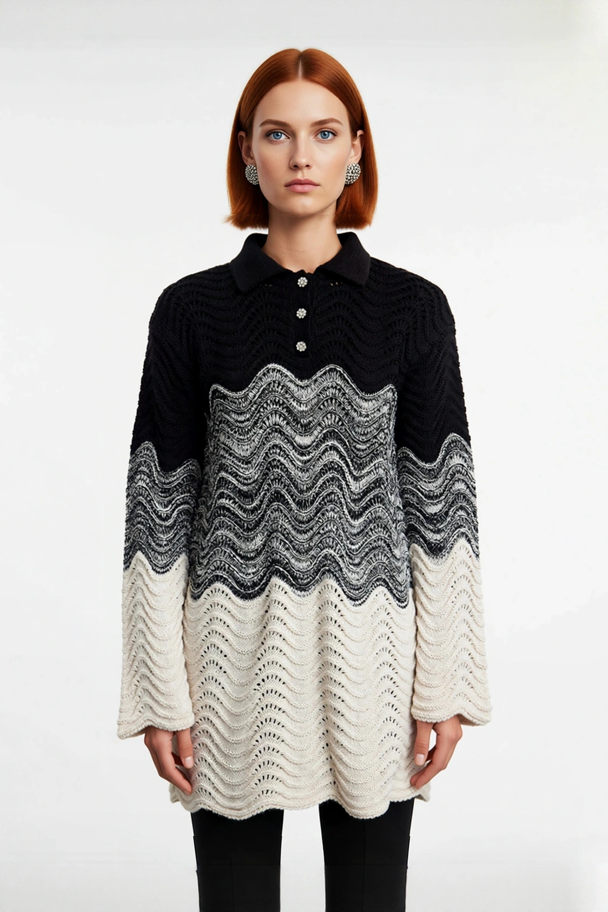 Ürün Özellikleri: Fitted kalıp, 100% akrilik materyal, renk bloklu desen, polo yaka, standart kol, triko kumaş, siyah ve krem renk, düğmeli detay.