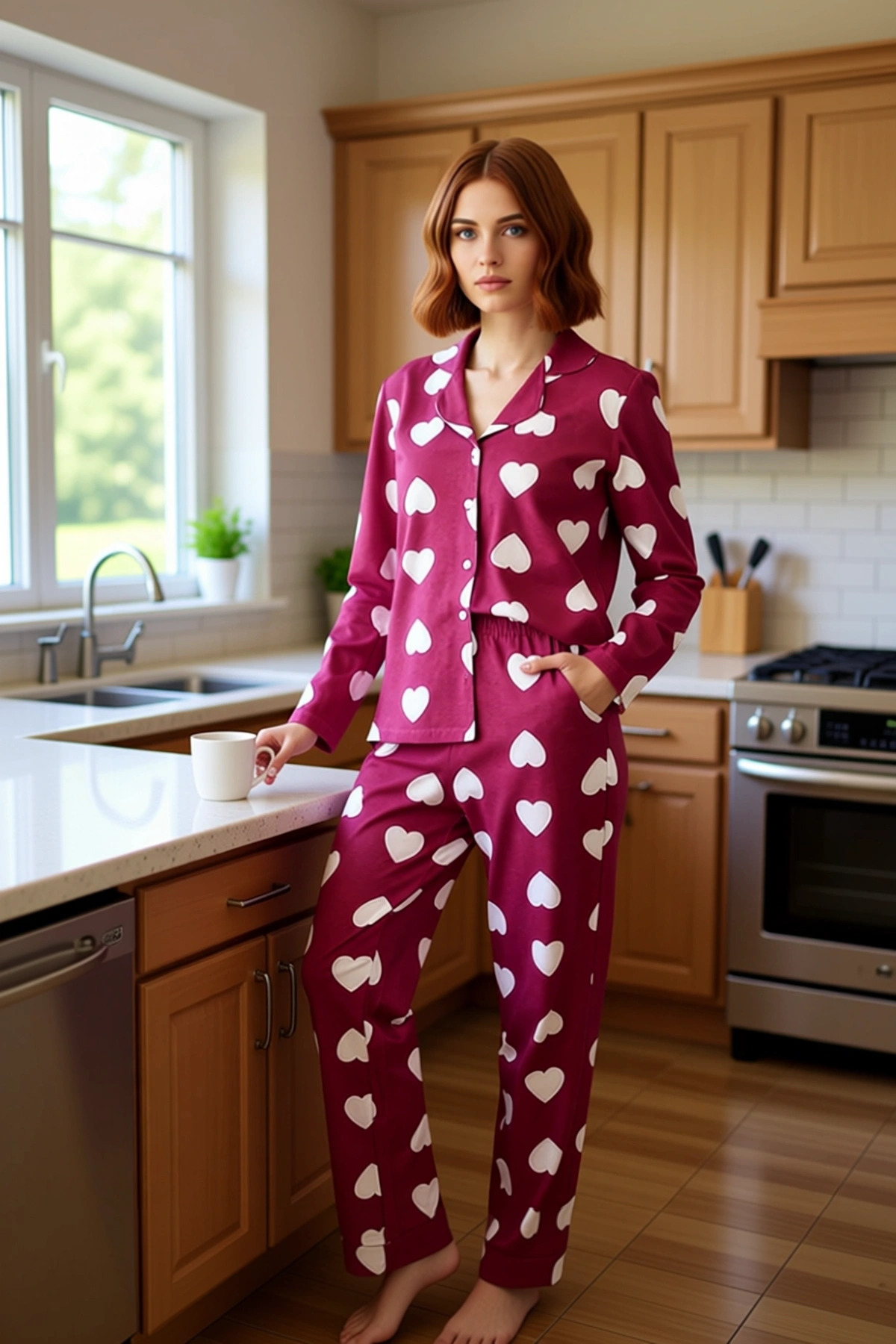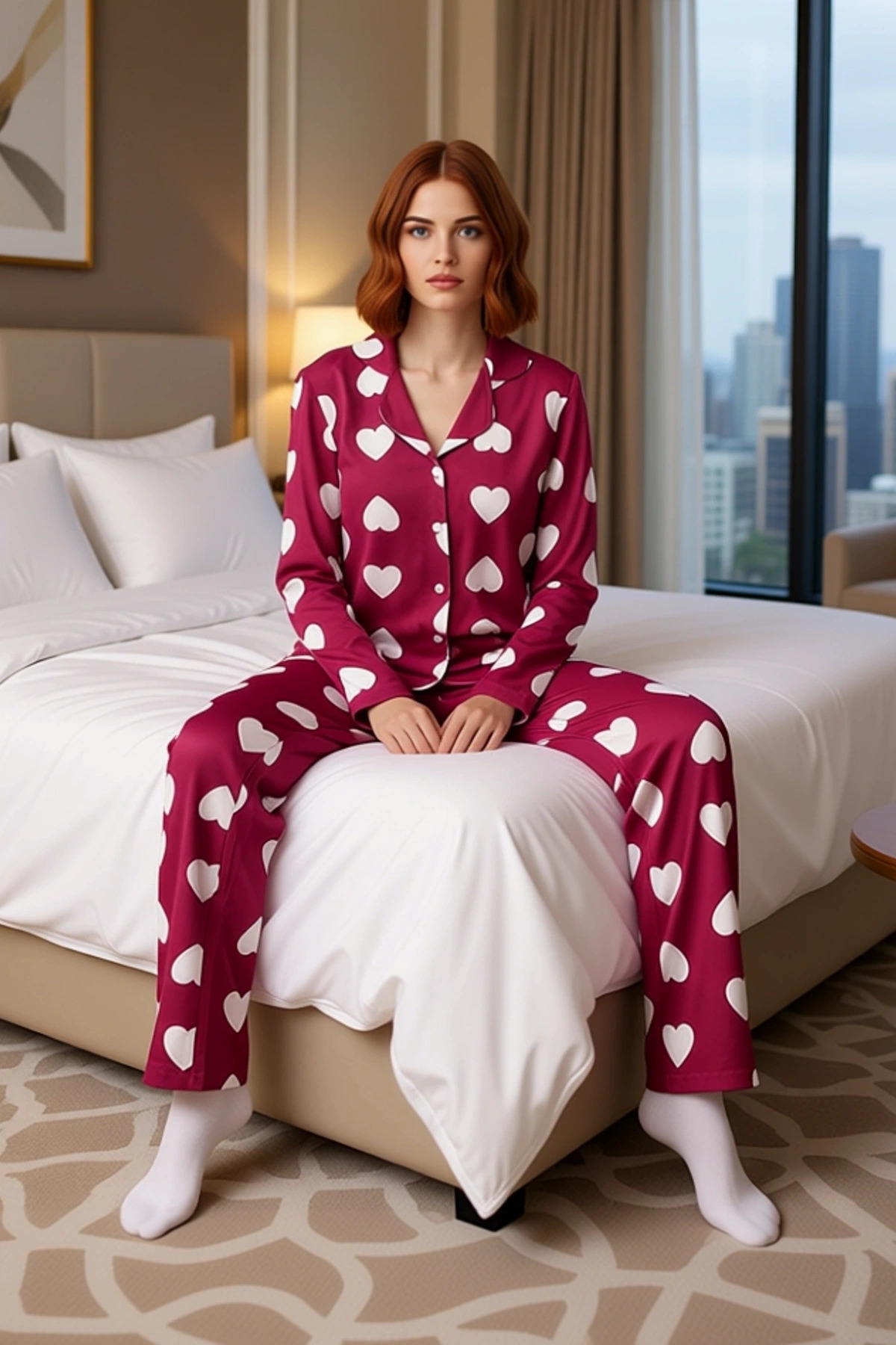 Kadın Kalp Desenli Pijama Takımı Fonksiyonel Dayanıklı Kaliteli Konforlu Estetik Premium Şık