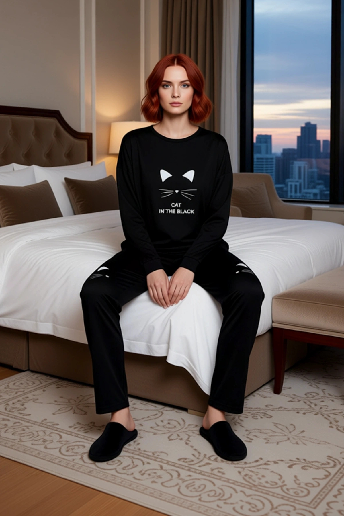 Kedi Temalı Kadın Ev Giyim Takımı Fonksiyonel Dayanıklı Kaliteli Konforlu Estetik Premium Şık