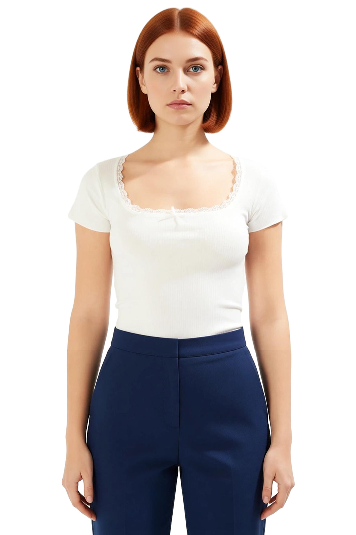 Yüksek kaliteli polyester ve elastan karışımı kumaş, dayanıklılığı ve kolay bakımıyla öne çıkıyor. Makinede yıkama kolaylığı sunarken, kırışma yapmayan özelliğiyle zaman kazandırıyor. Bluzun kısa kol tasarımı, yaz aylarında serin kalmanızı sağlarken, kare yakası şık bir görünüm kazandırıyor. Dantel detayı, bluza feminen bir hava katarak stilinizi tamamlıyor. Cepsiz tasarımıyla minimal ve modern bir görünüm sunuyor.