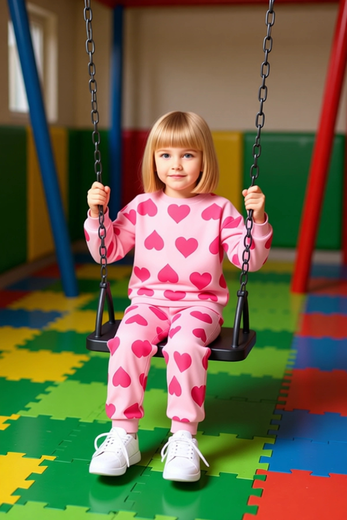 Kız Çocuk Kalp Baskılı Pamuklu Regular Fit Örme Takım Kaliteli Şık Rahat Günlük